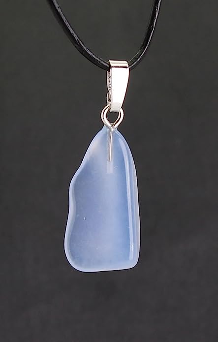 Sie erhalten hier einen Chalcedon Trommelstein Anhänger. Der Edelstein misst eine Größe von mind. 20 x 12 mm und seine Öse besteht aus 925er Sterling Silber. Geliefert wird der Kettenanhänger mit einem schwarzen Lederband in einem Organzasäckchen. Bitte beachten Sie vor Ihrem Kauf, dass die Produktbilder als Beispiel dienen, denn Edelsteine sind ein Naturprodukt und können daher in Farbe, Form und Zeichnung variieren. Jedes Stück ist ein Unikat.