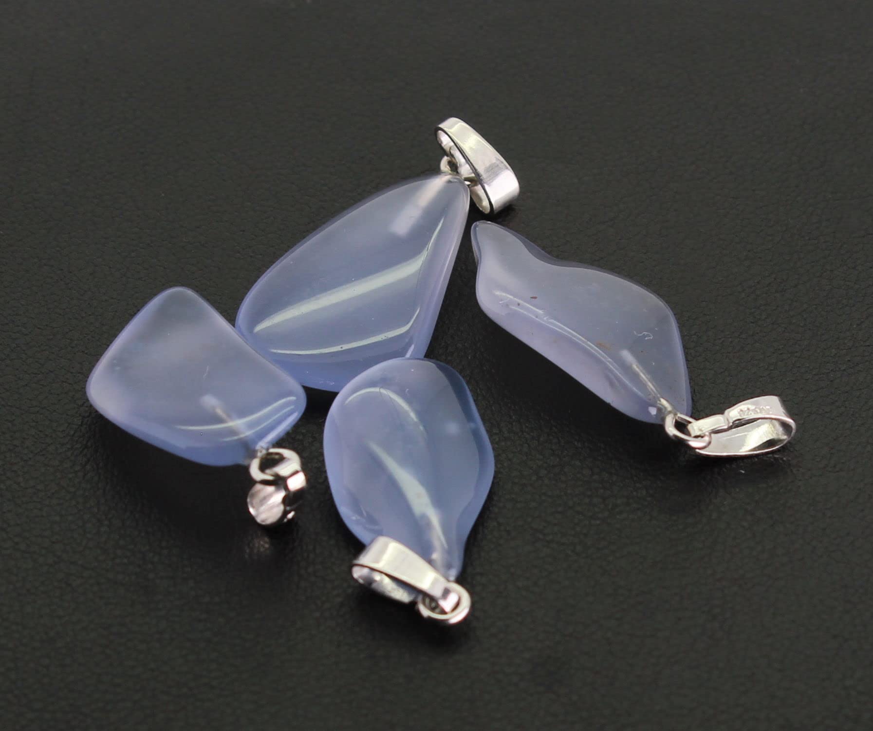 blauer Chalcedon Trommelstein Anhänger Kettenanhänger 925 Silber Öse