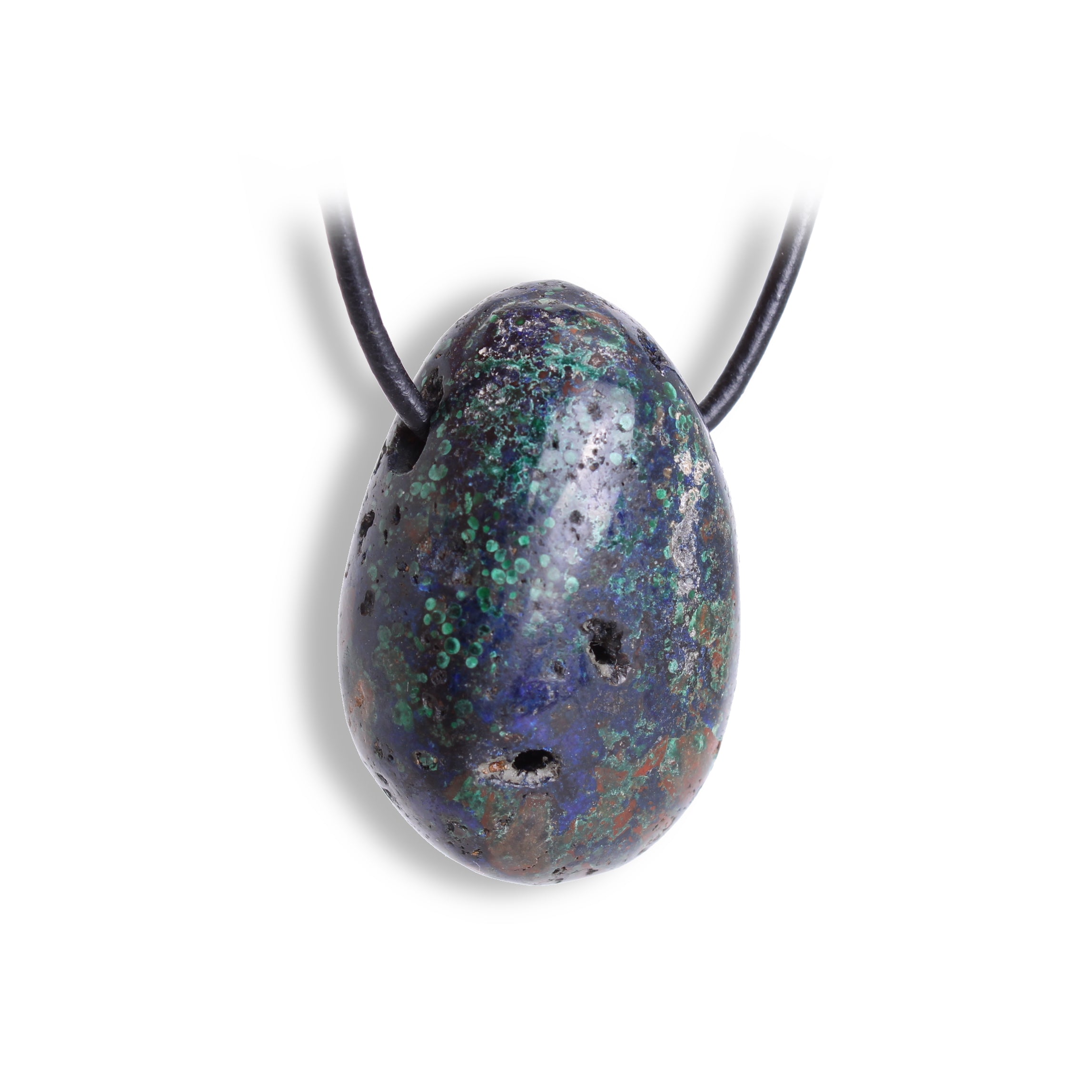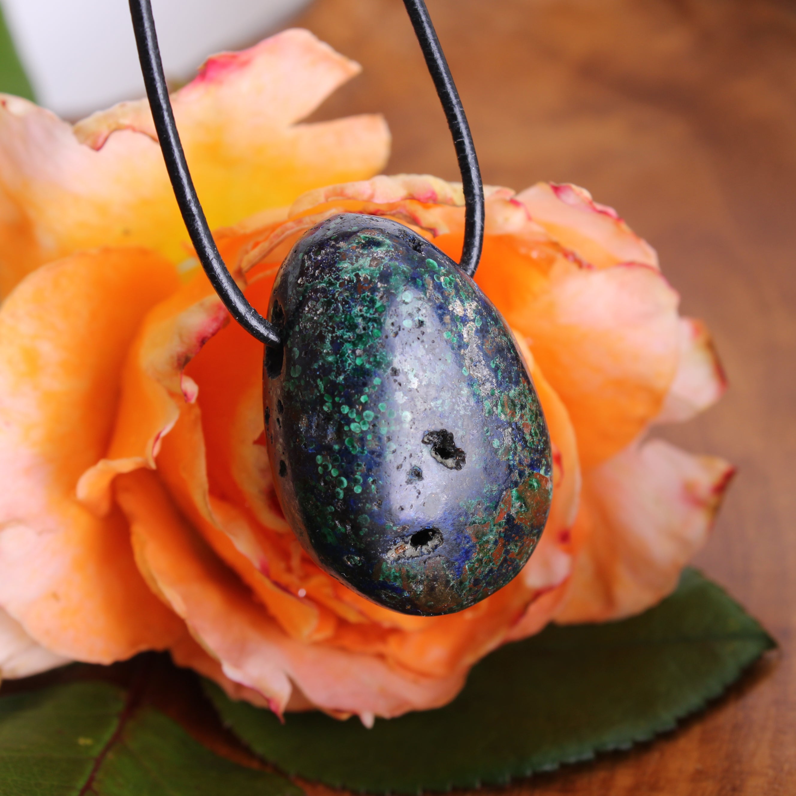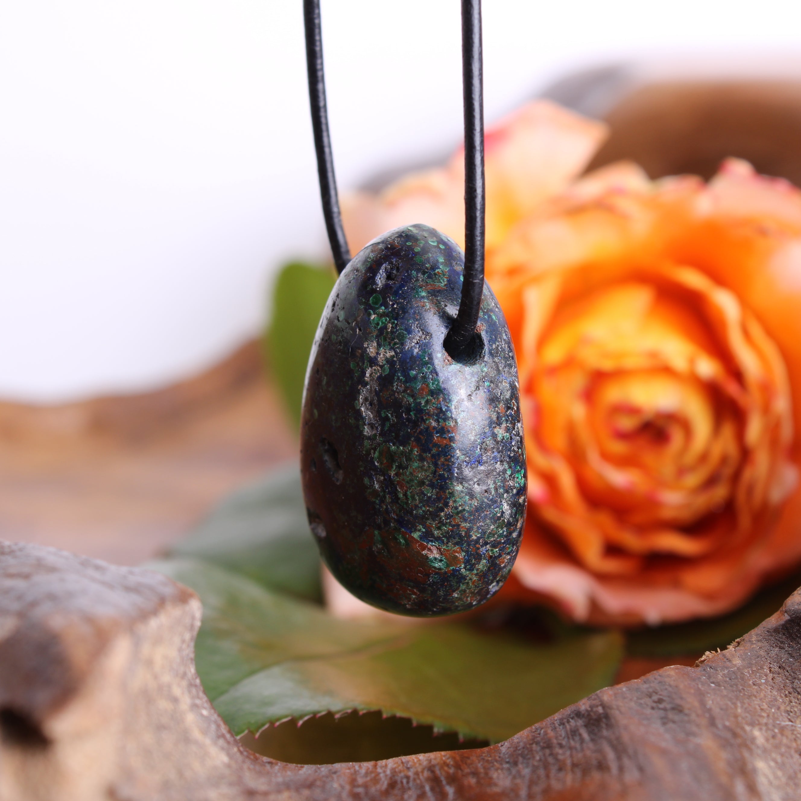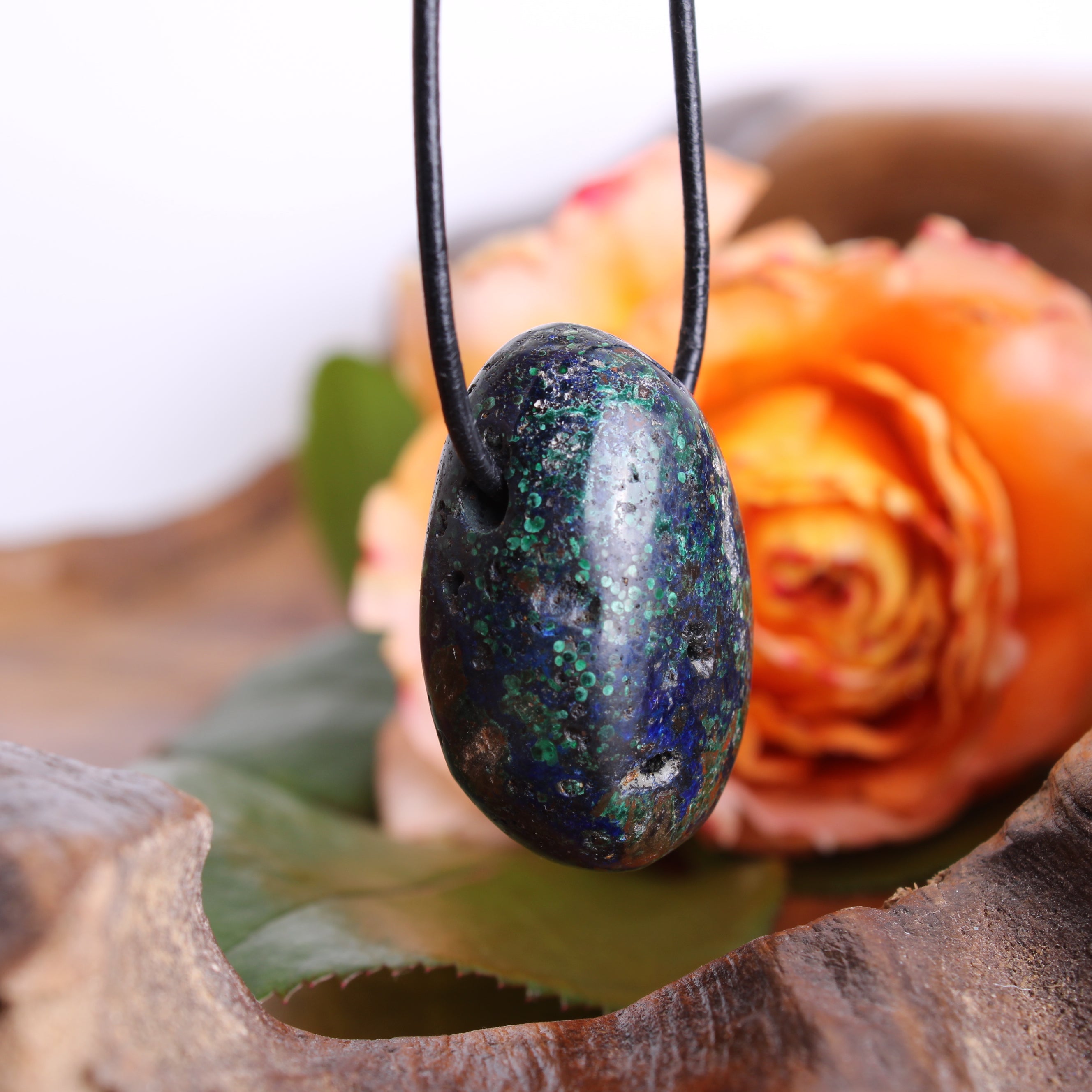 Azurit-Malachit Anhänger – Echtstein Schmuckstück mit Lederband (1 m) – Lieferung im Organzasäckchen