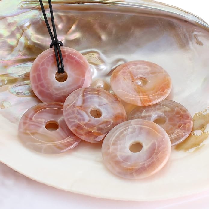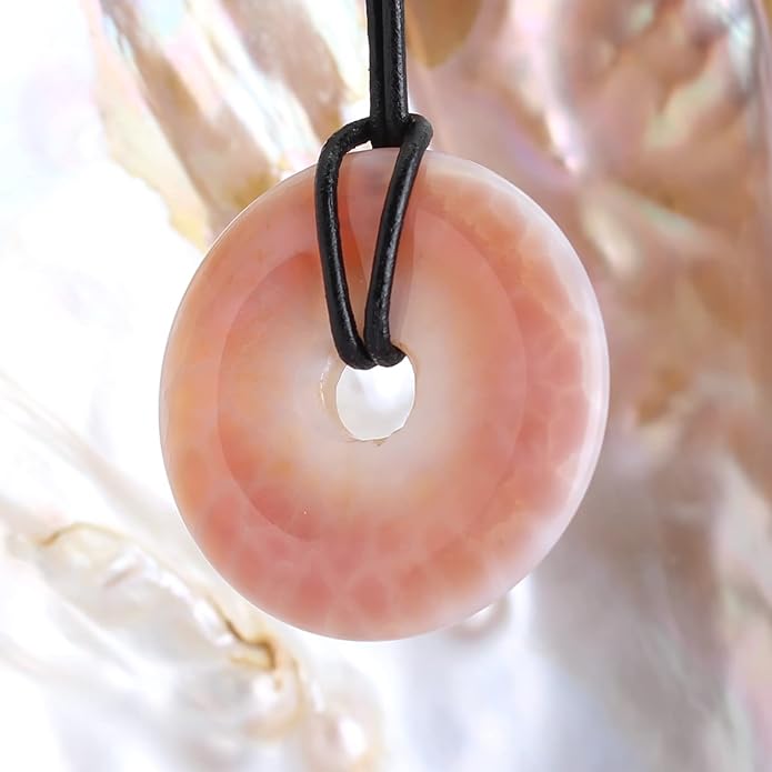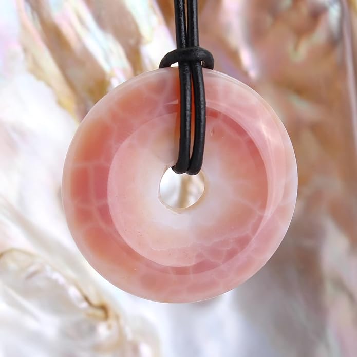Feuerachat Donut Hals Schmuck Anhänger Kettenanhänger mit Lederband