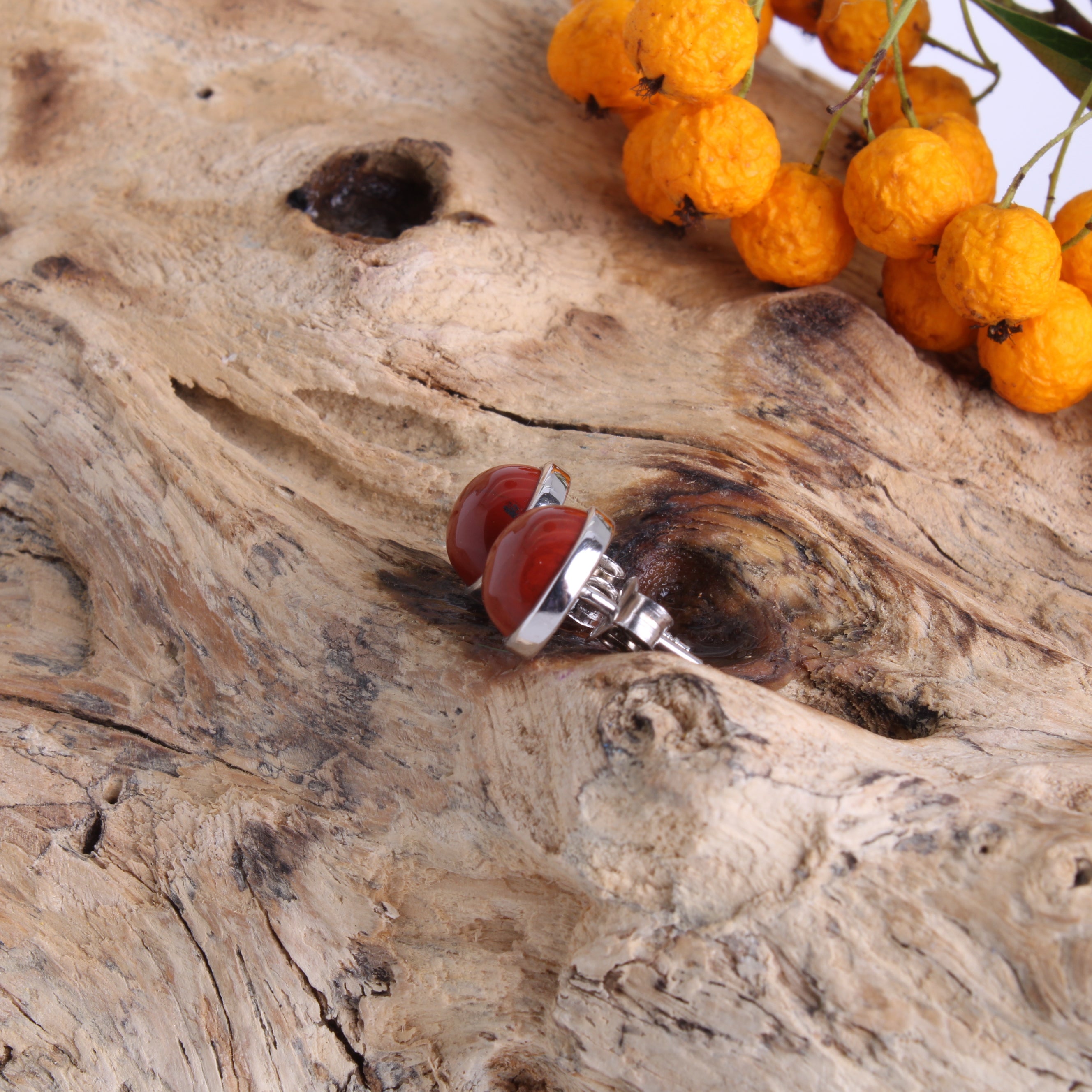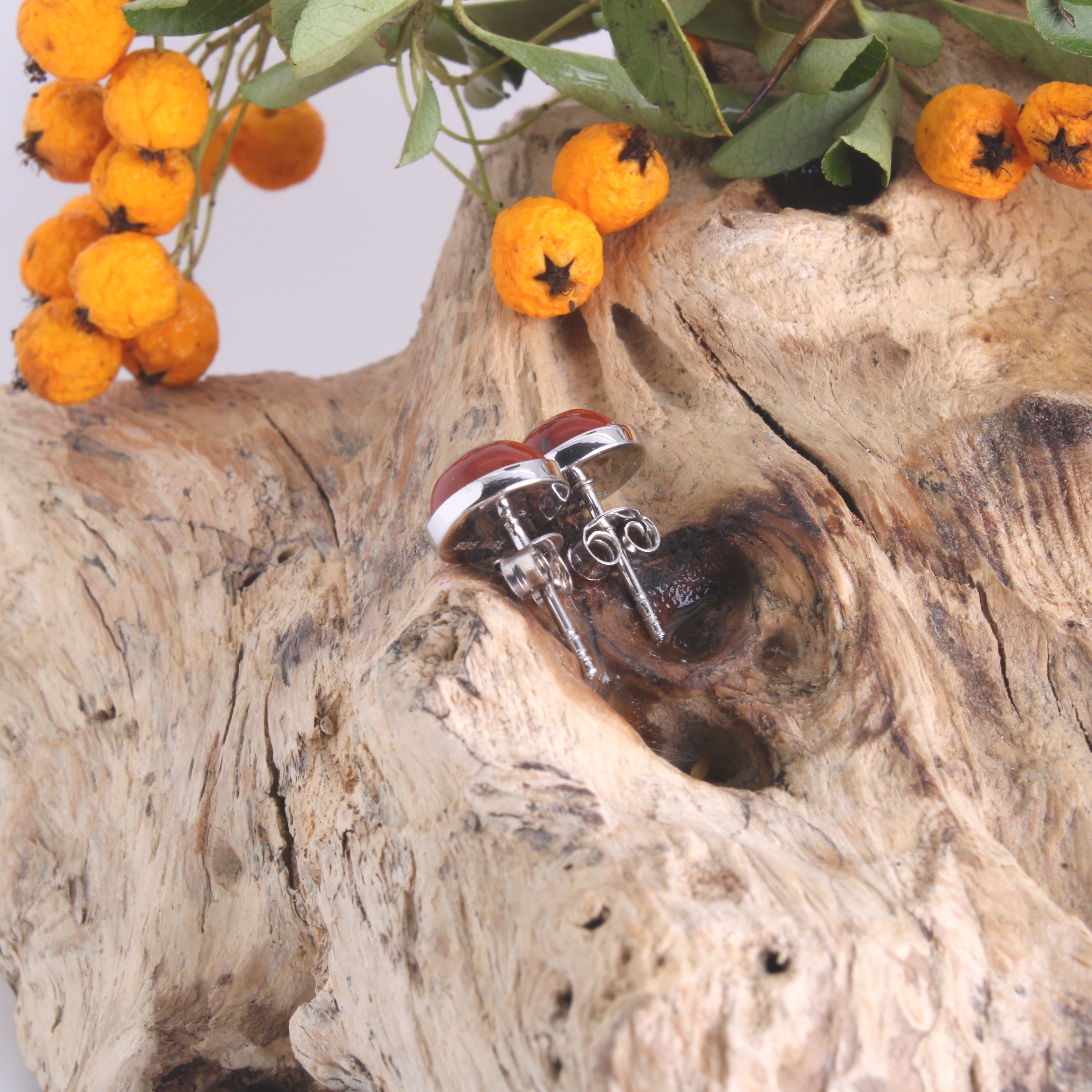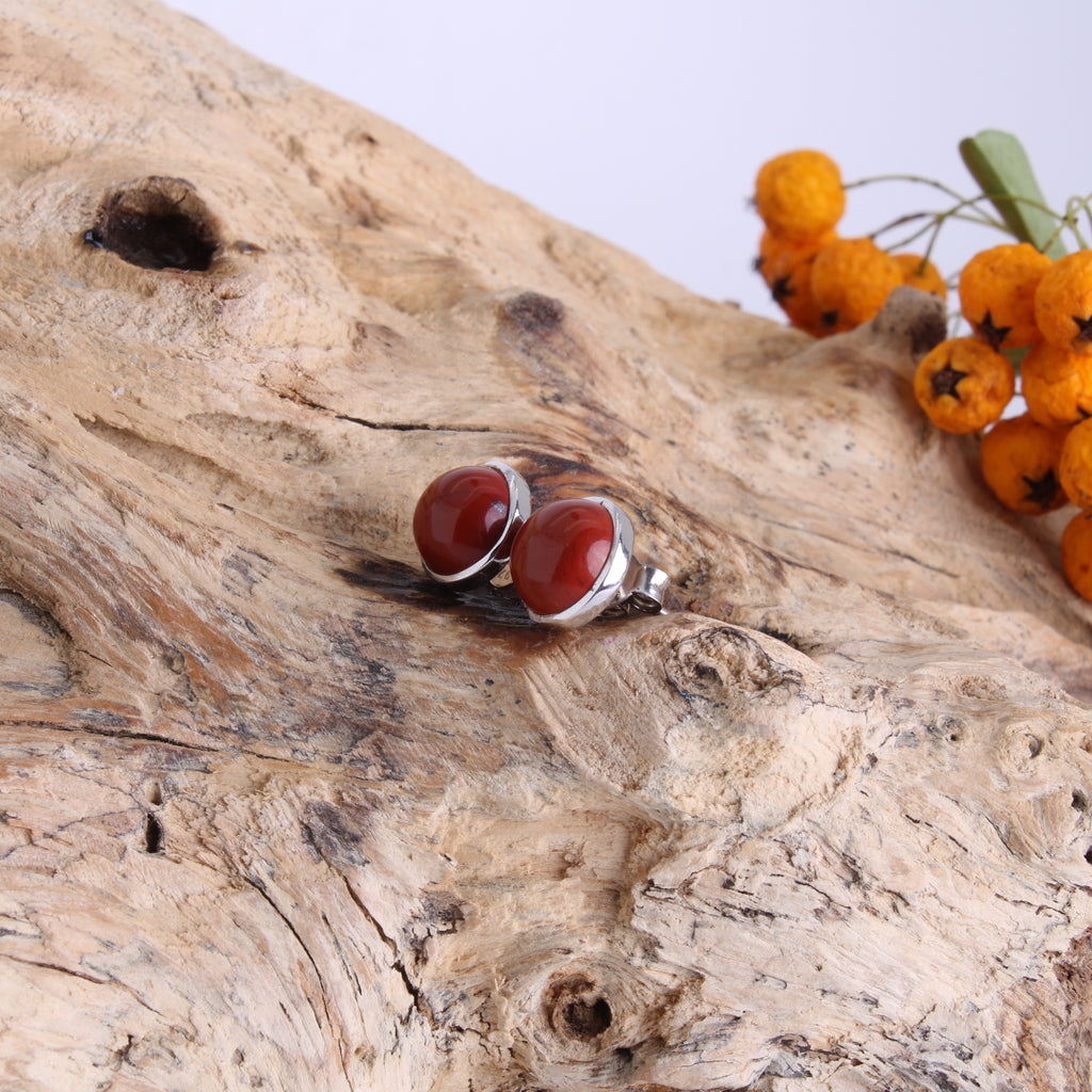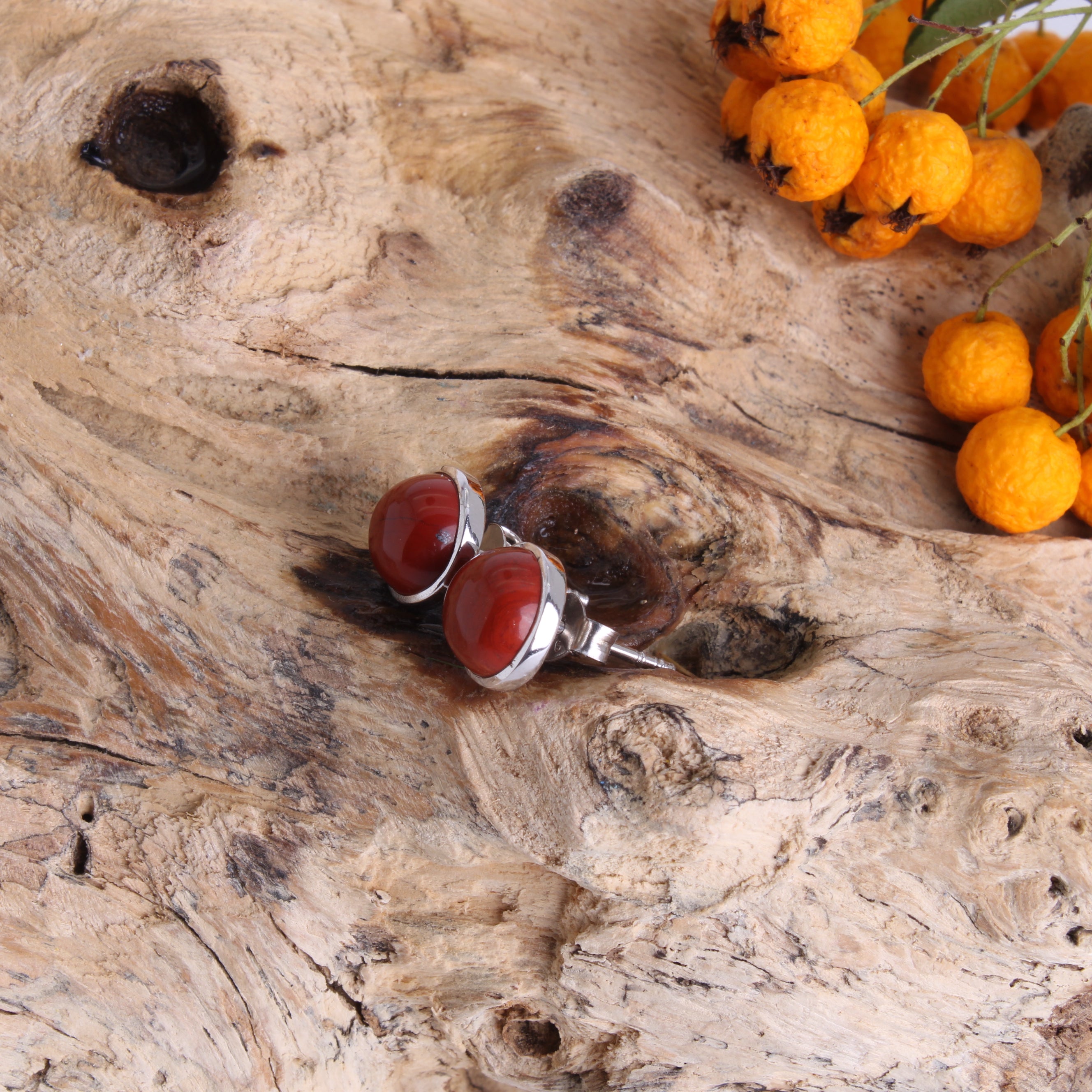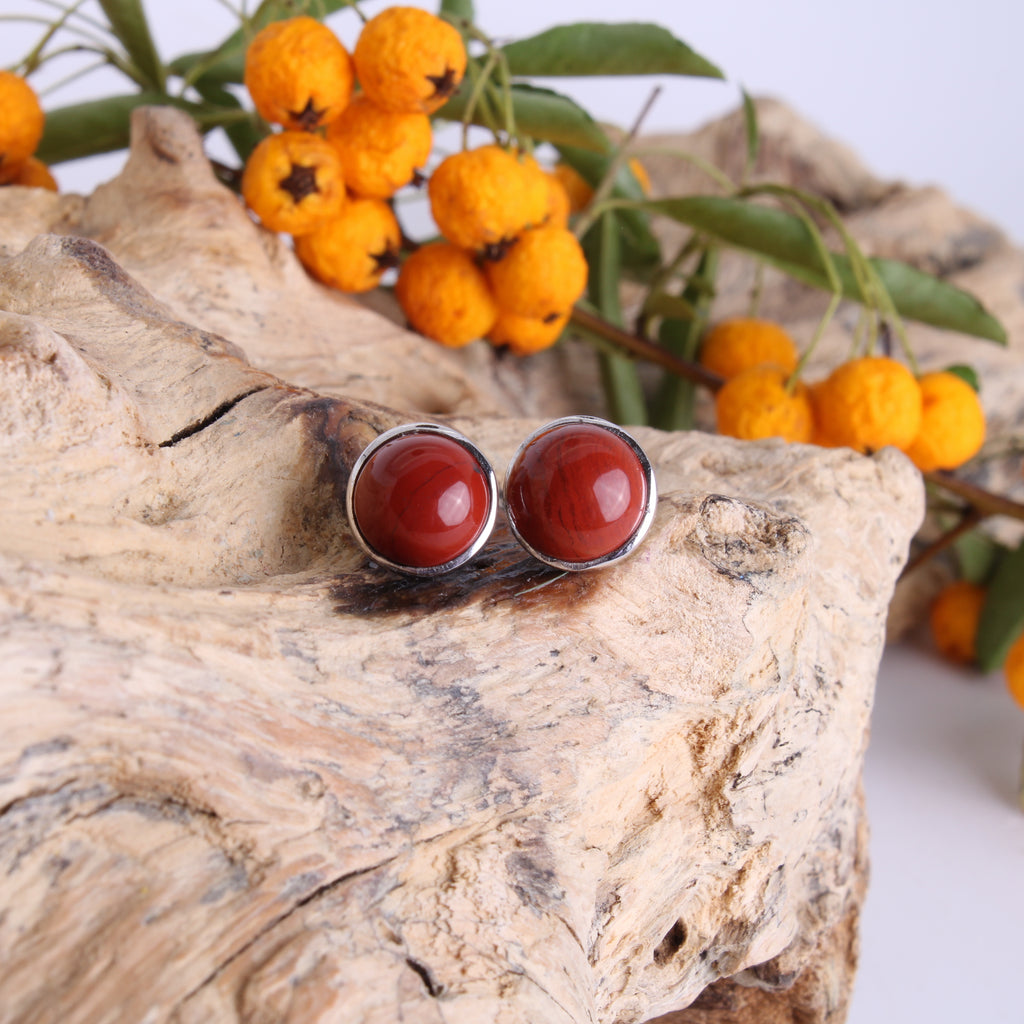 Elegante Ohrstecker Damen mit rotem Jaspis Cabochon 8mm in 925 Sterling Silber Naturstein Ohrringe mit Schraubverschluss Edelstein Schmuck Geschenk