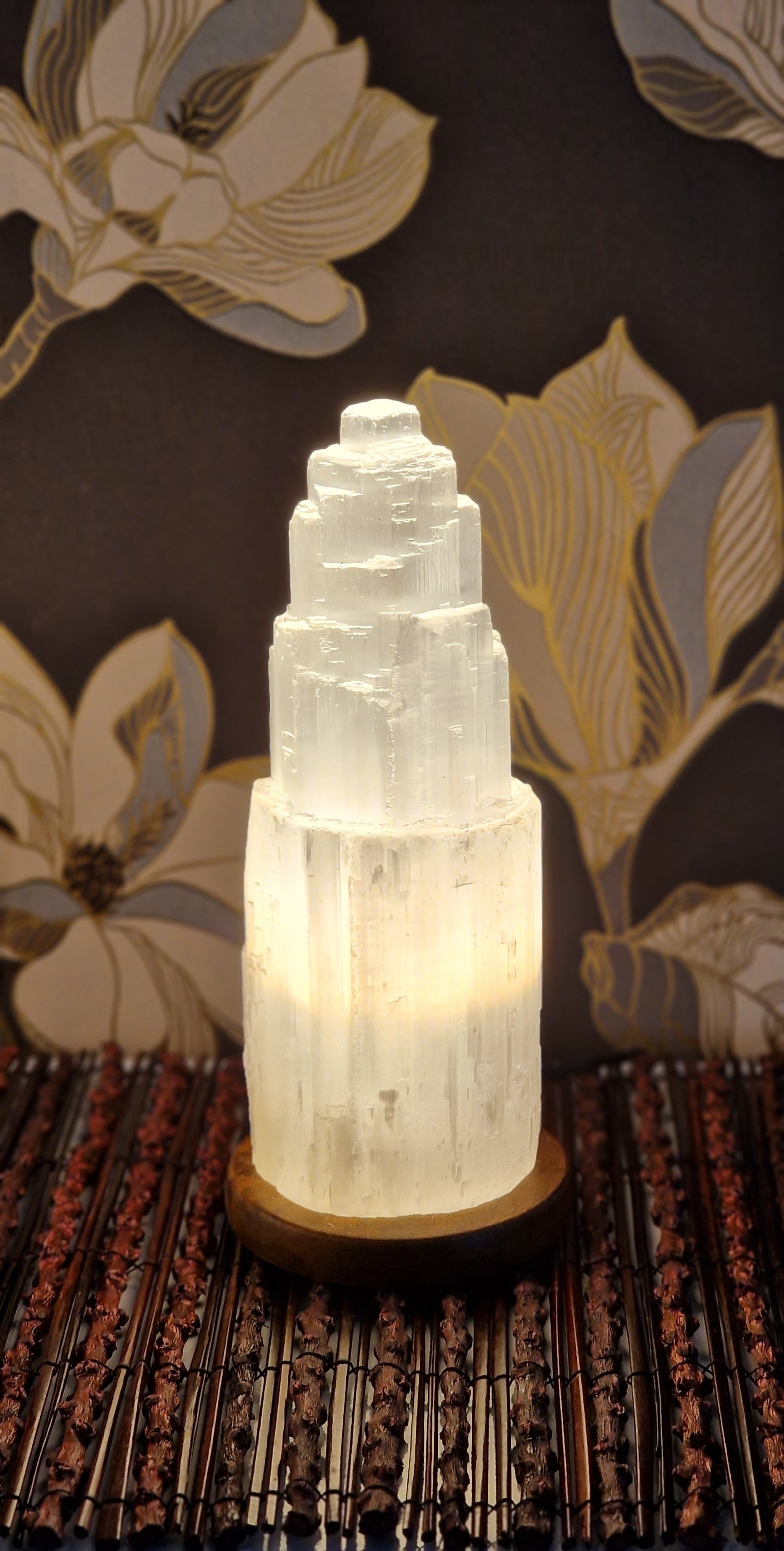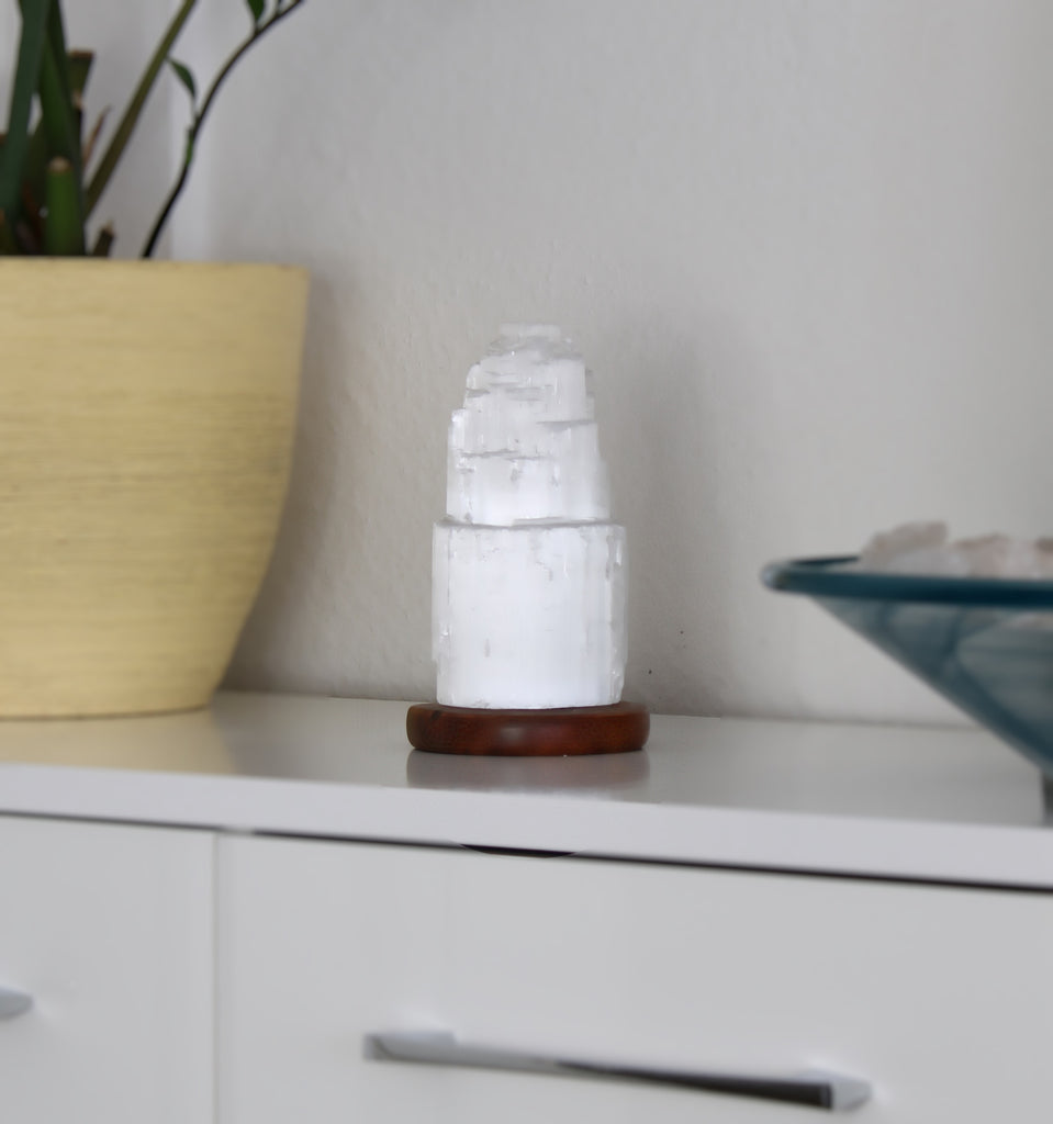 - Sie erhalten eine Selenit Lampe inkl. Sockel.