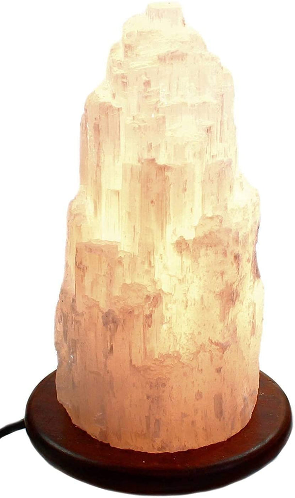 Lampe aus Selenit mit Holzsockel Höhe ca. 22-24 cm Kaskade Selenit Tischlampe Selenitlampe