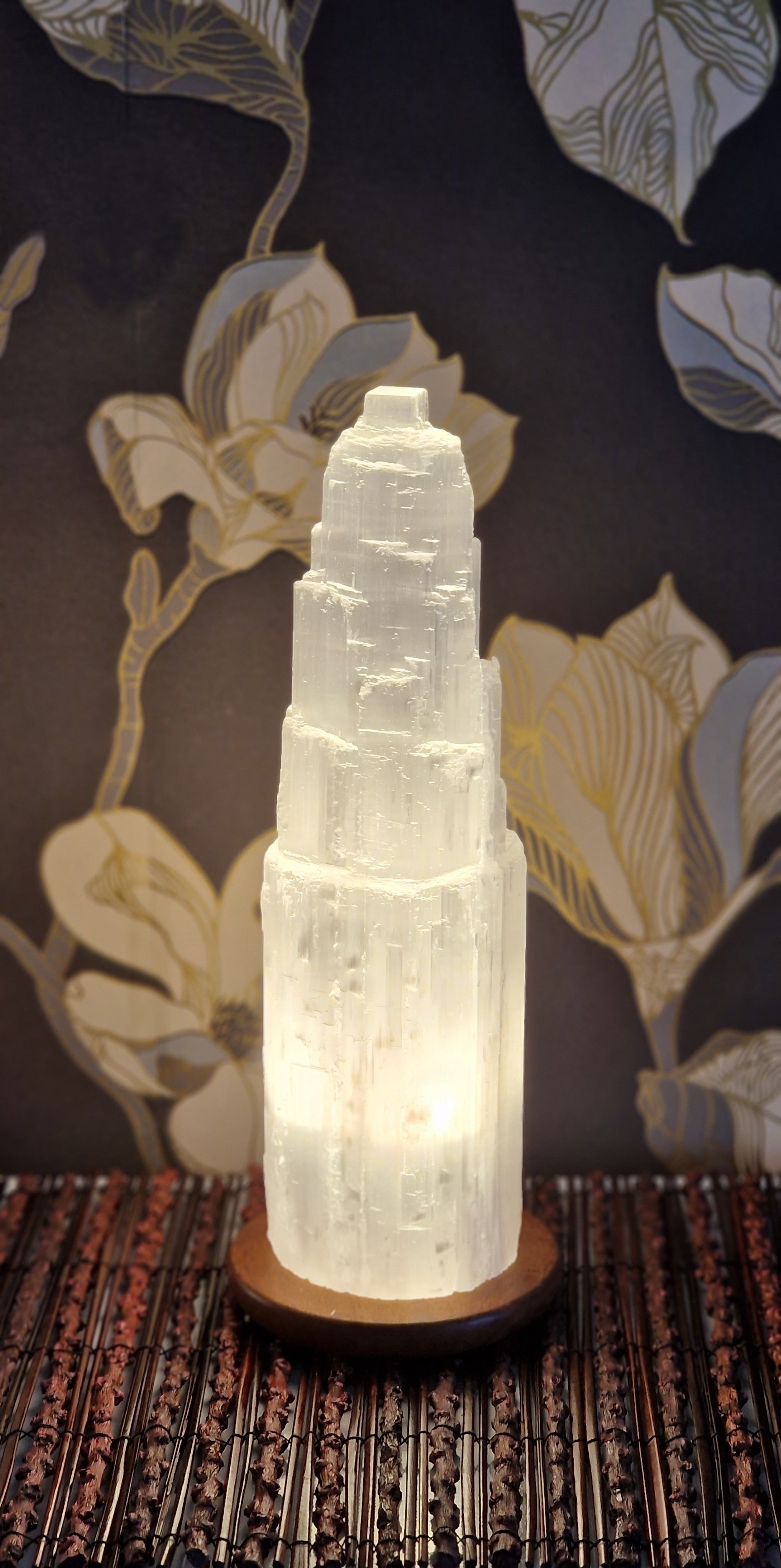 - Sie erhalten eine Selenit Lampe inkl. Sockel.
