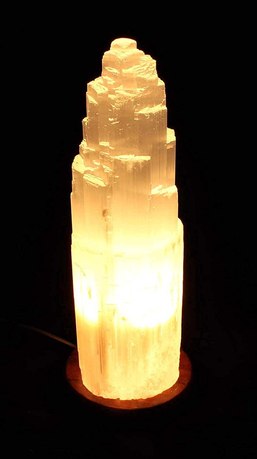 Selenitlampe Lampe aus Selenit inkl. Sockel Höhe ca. 36-38 cm Kaskade Selenit Tischlampe