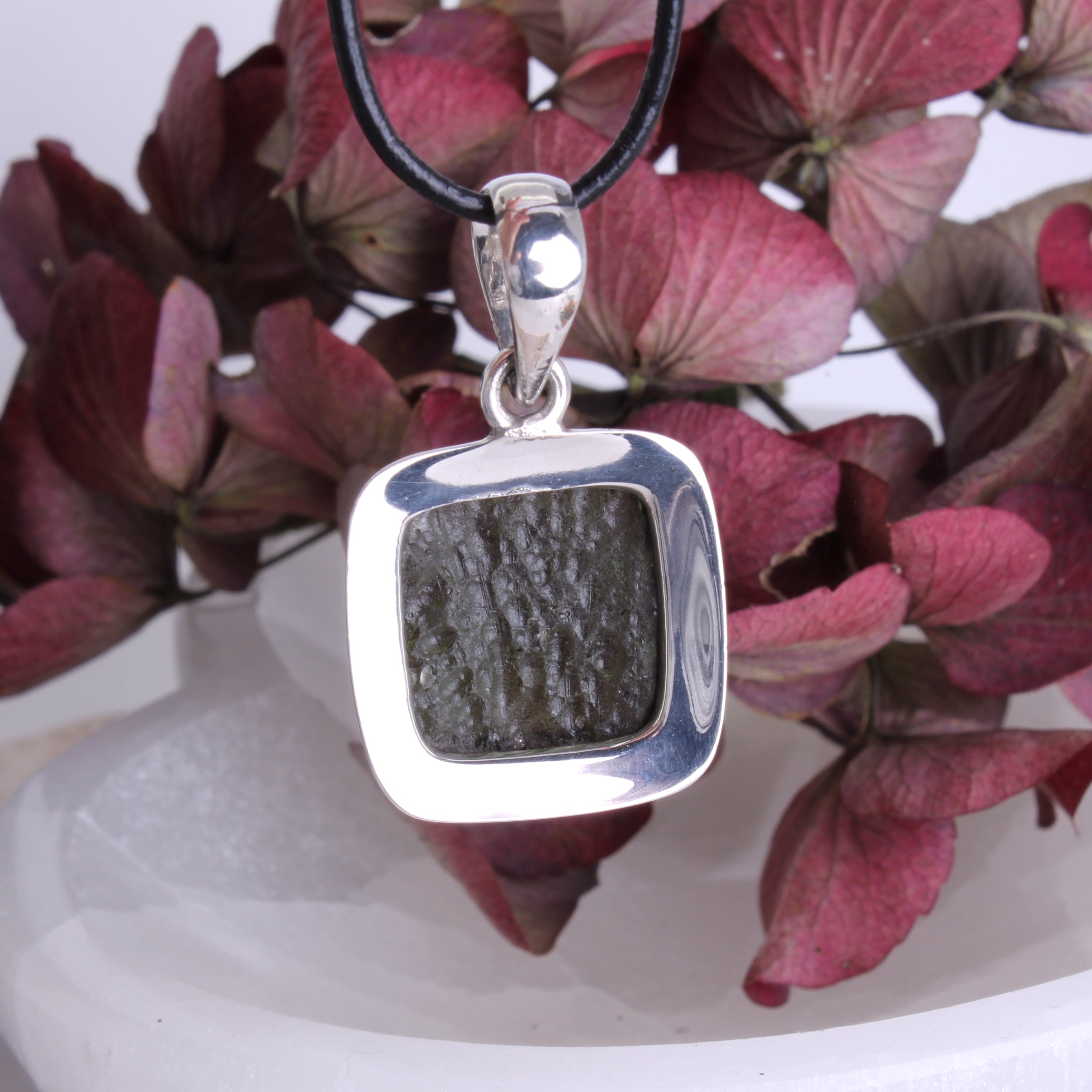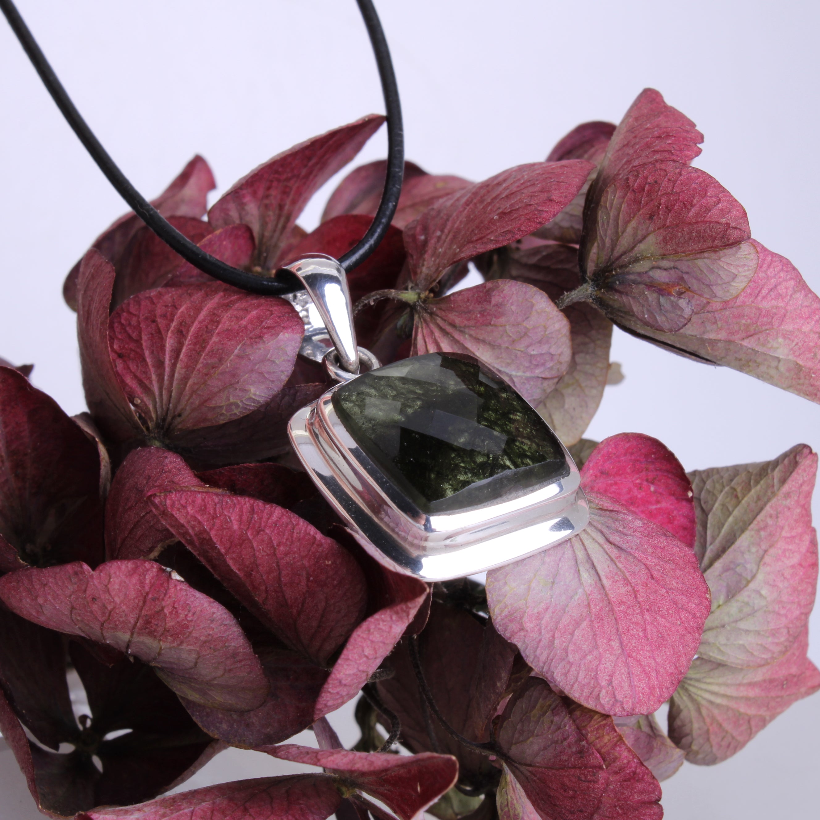 Dieser edle Anhänger ist ein echtes Unikat: Ein facettierter, eckiger Moldavit – ein seltener Glasmeteorit, entstanden vor Millionen von Jahren durch einen Meteoriteneinschlag. Der Edelstein wurde in eine massive 925 Sterling Silber-Fassung mit stabiler Öse eingefasst und besticht durch seine klare, elegante Form.