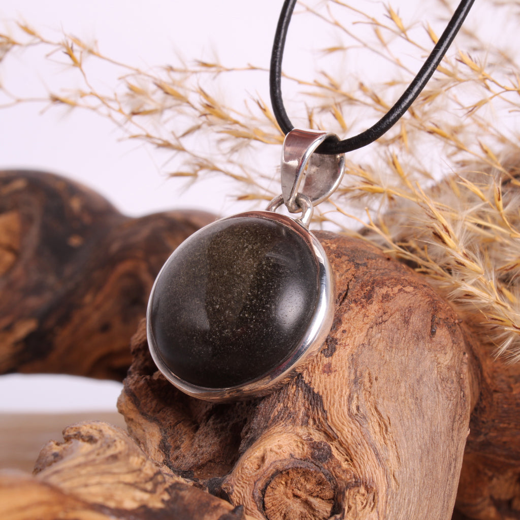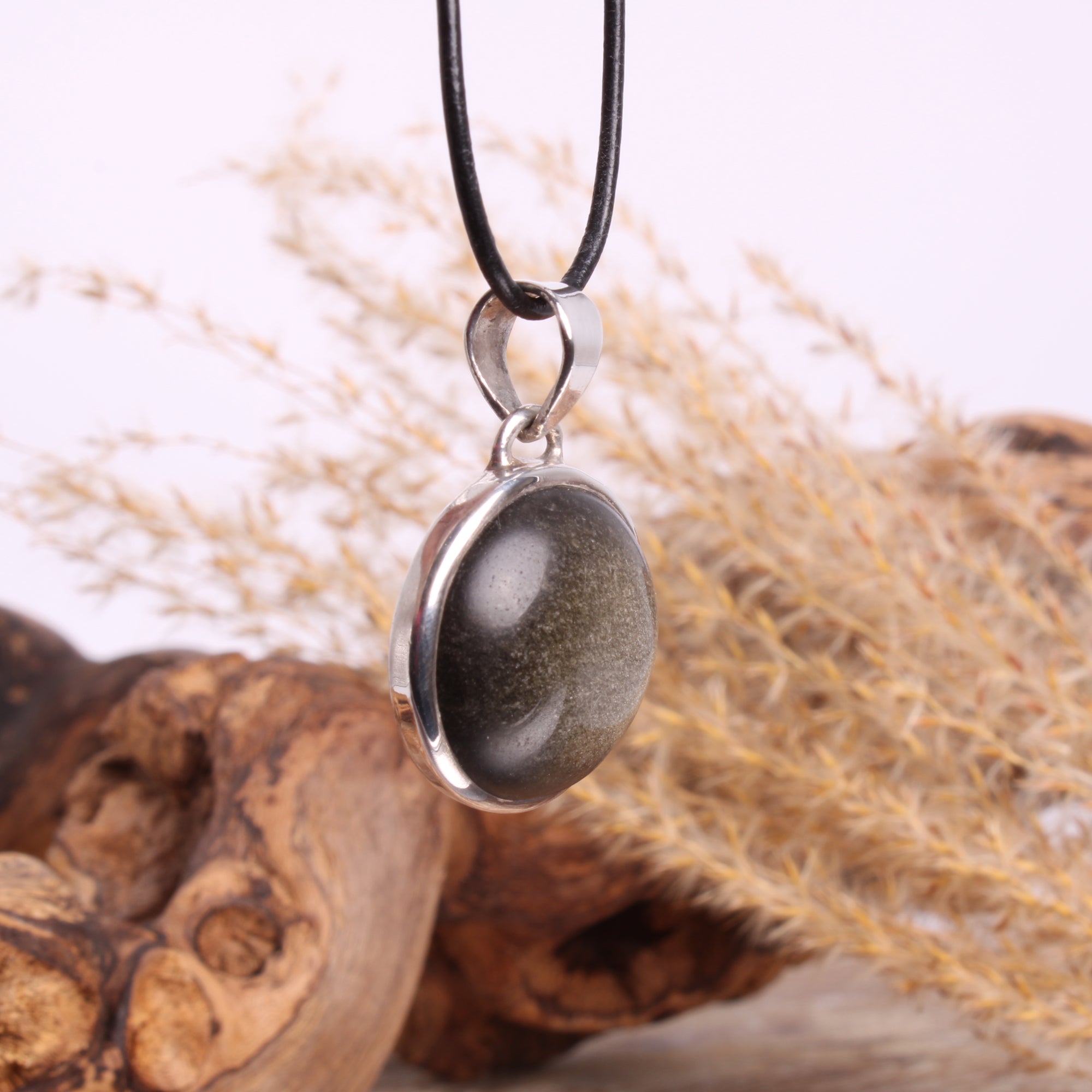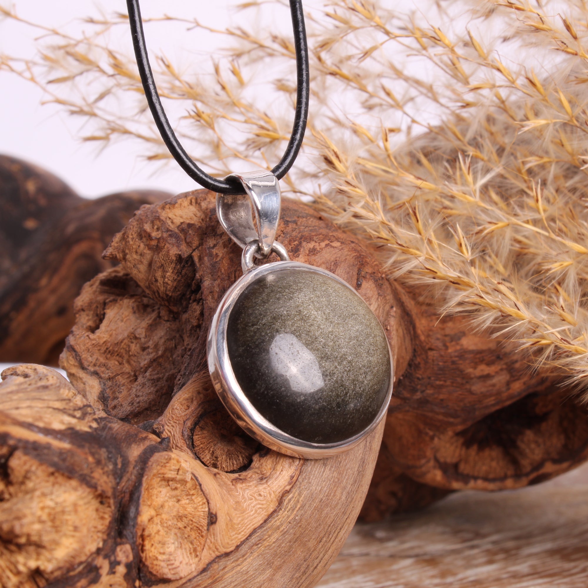Goldobsidian Anhänger – Echtes Unikat in 925er Silberfassung mit Lederband & Geschenkbox, ca. 3,4 cm