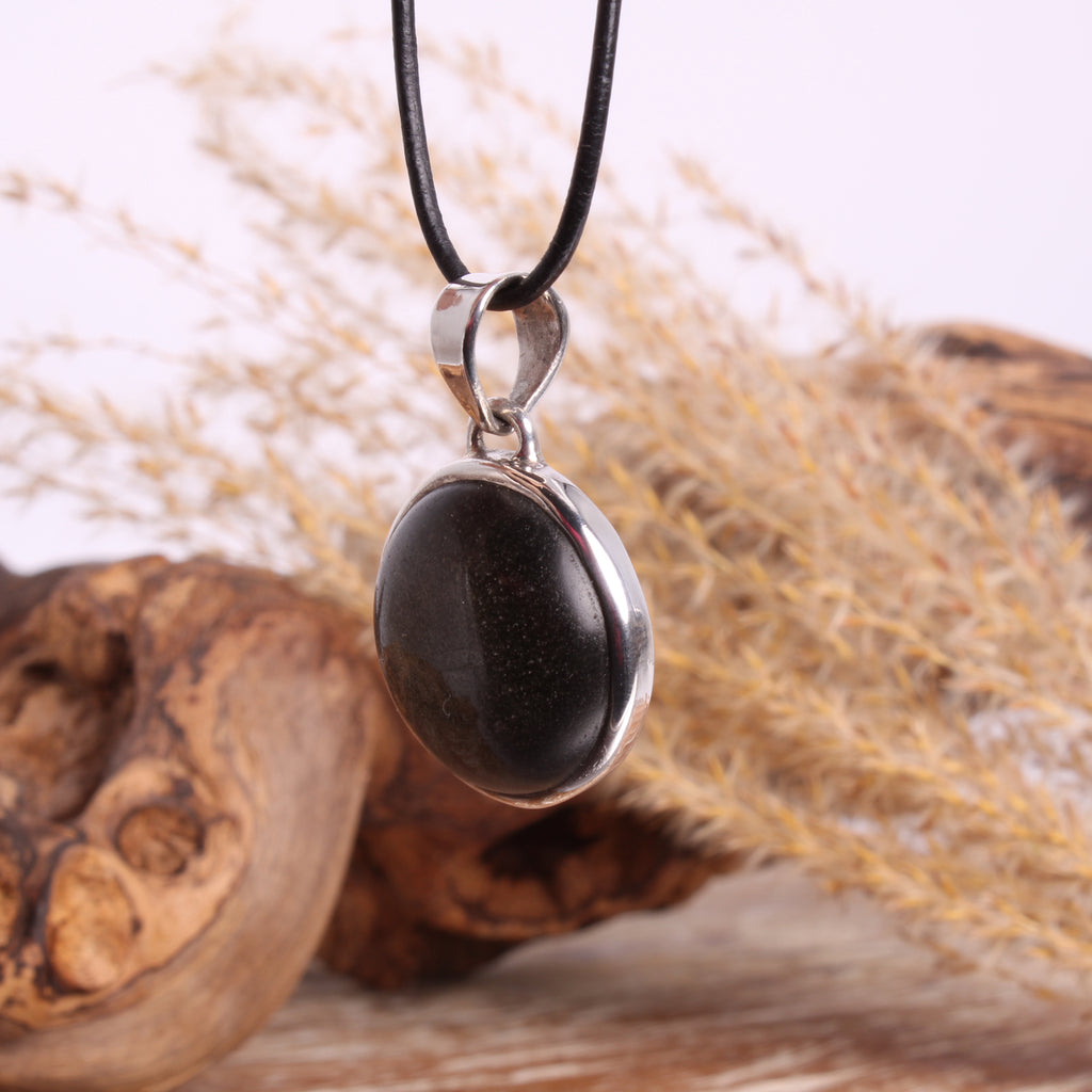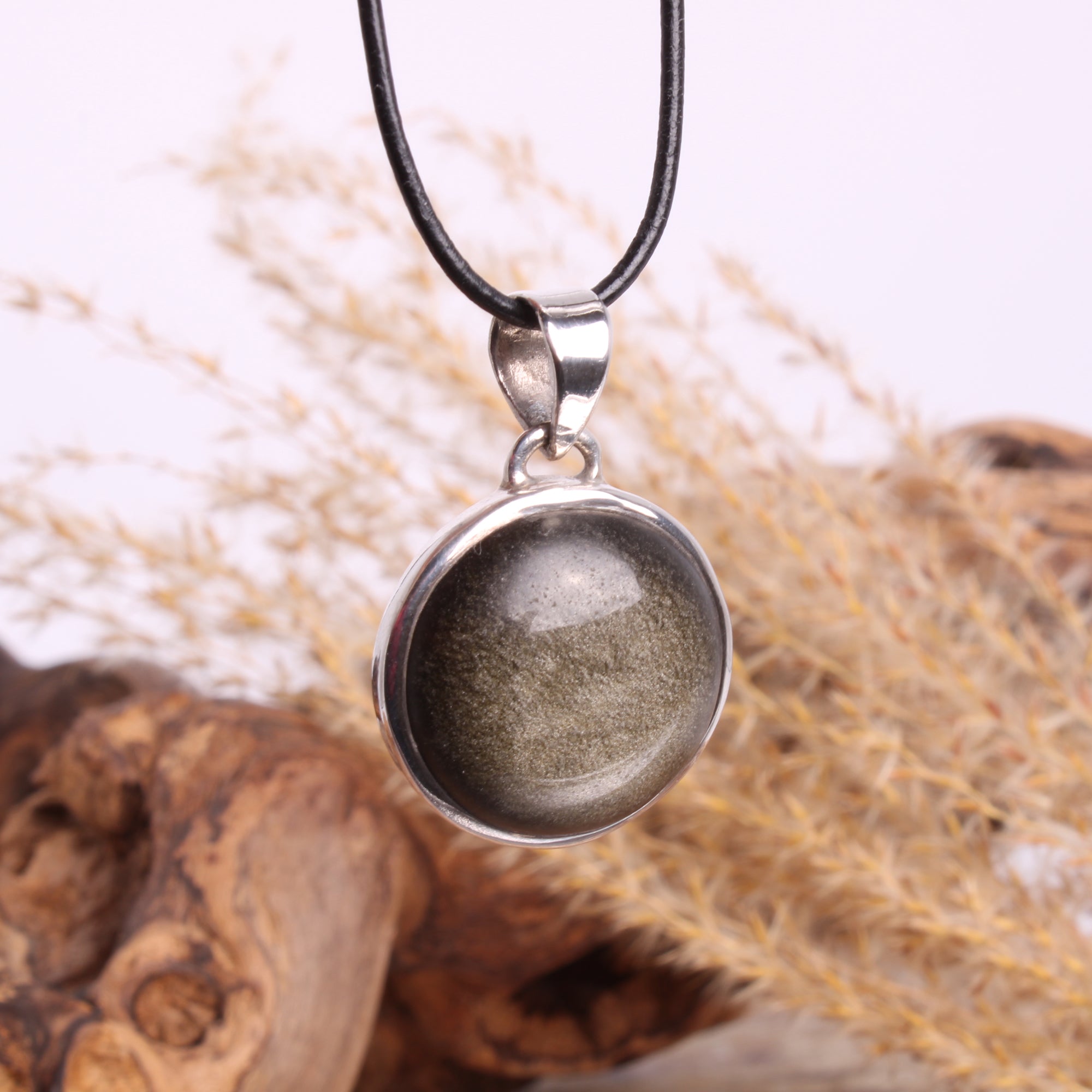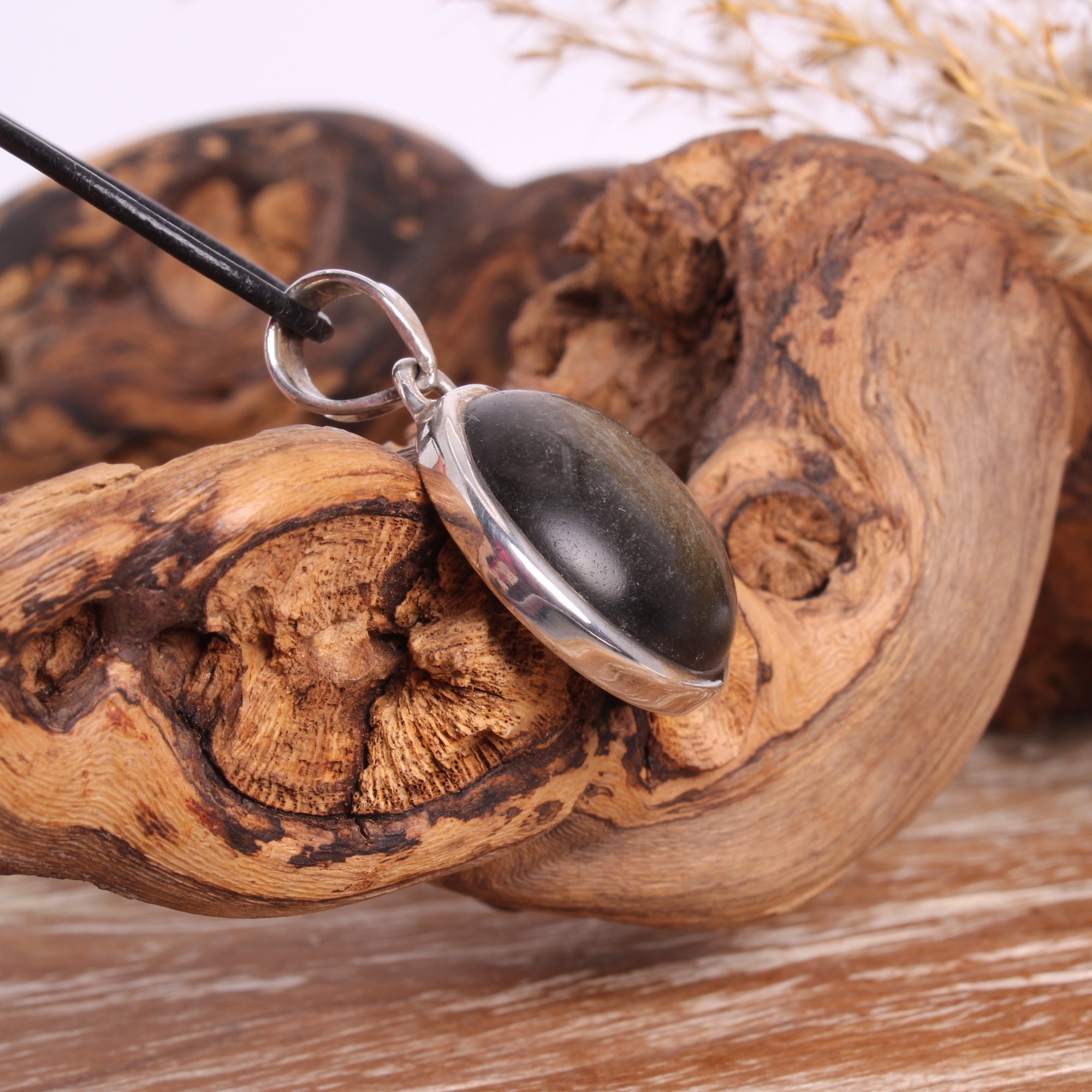 Goldobsidian Anhänger – Echtes Unikat in 925er Silberfassung mit Lederband & Geschenkbox, ca. 3,4 cm