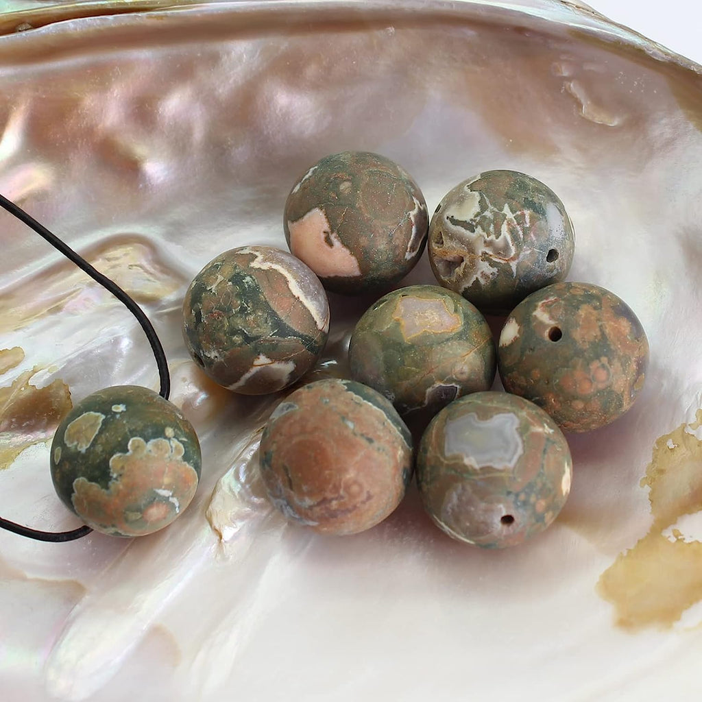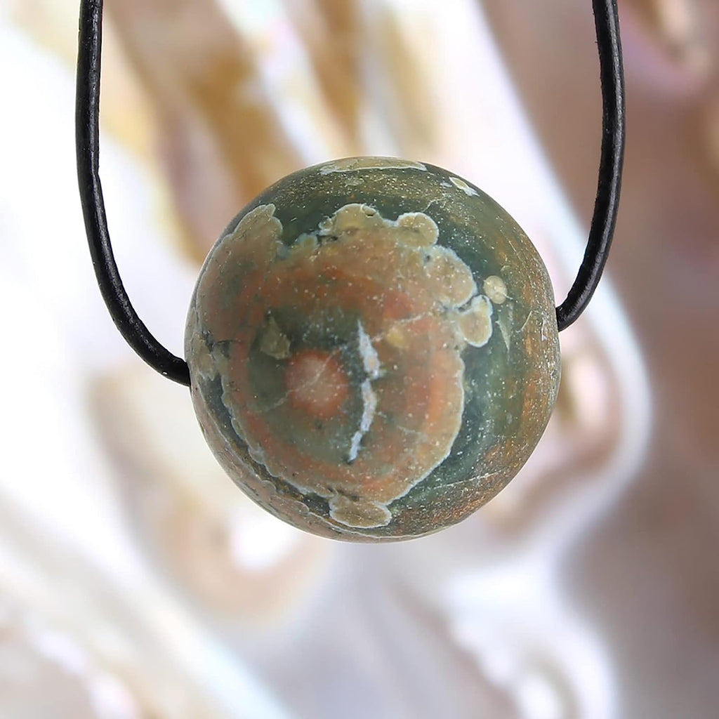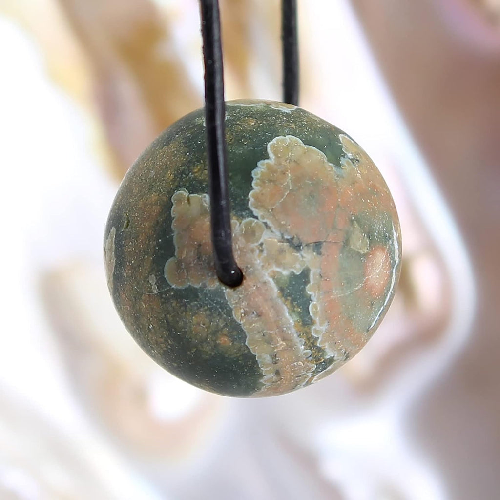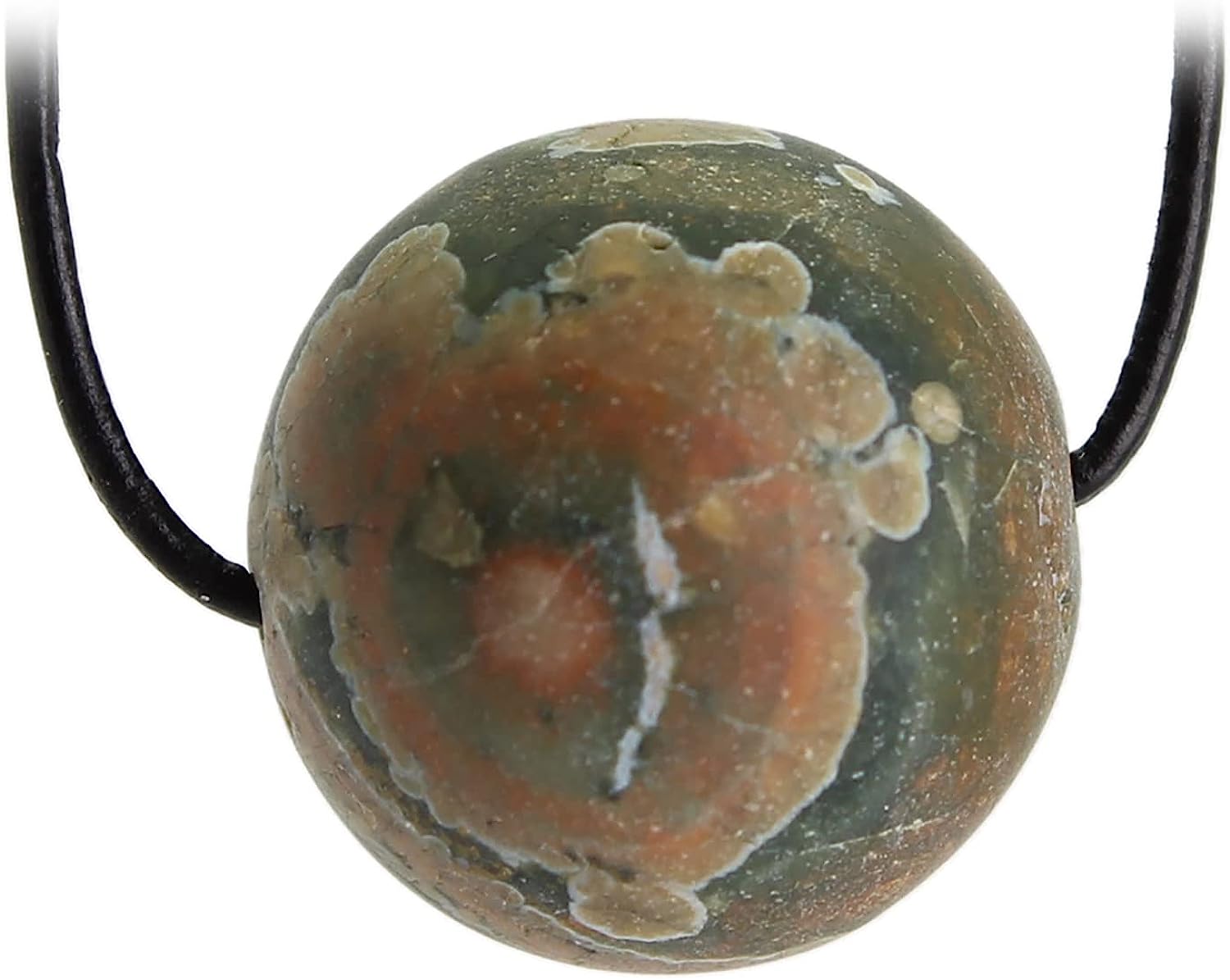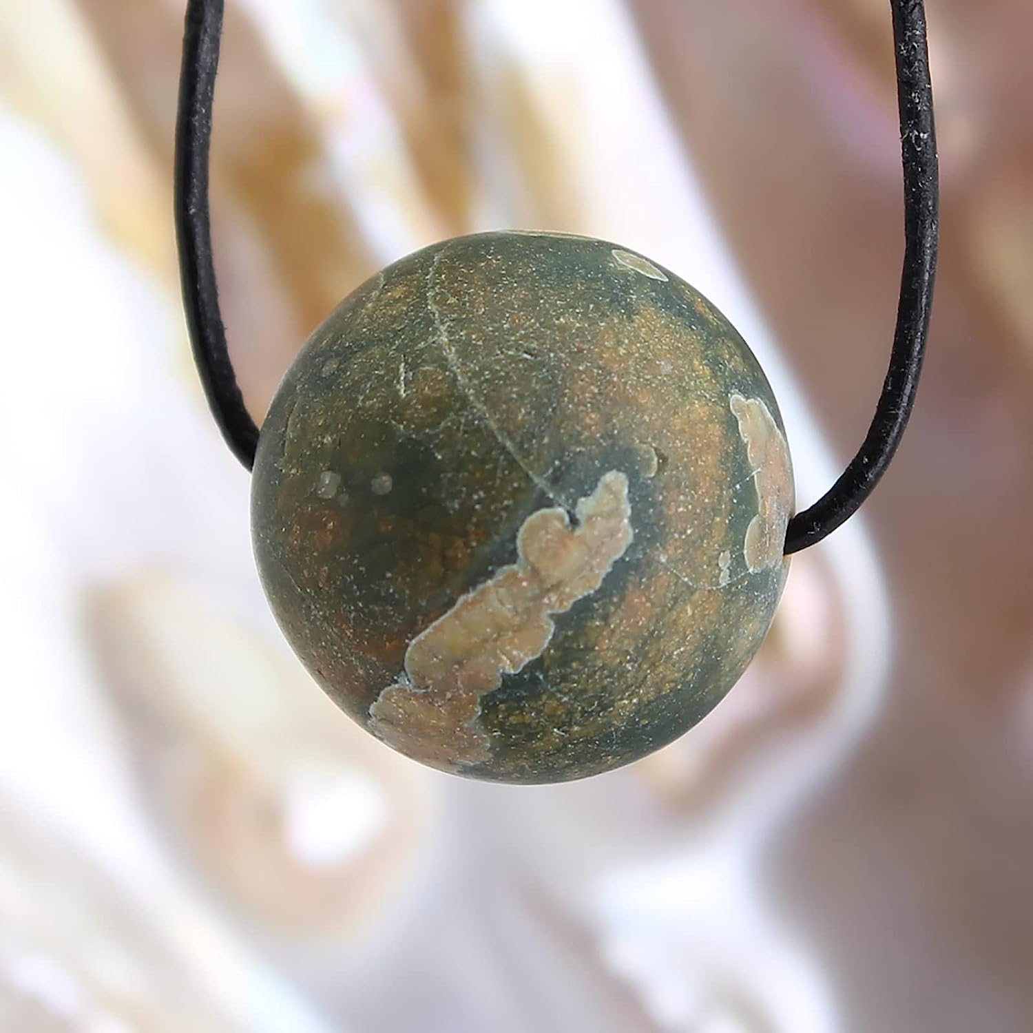 Regenwald-Rhyolith Kugel Anhänger Kettenanhänger matt mit Lederband