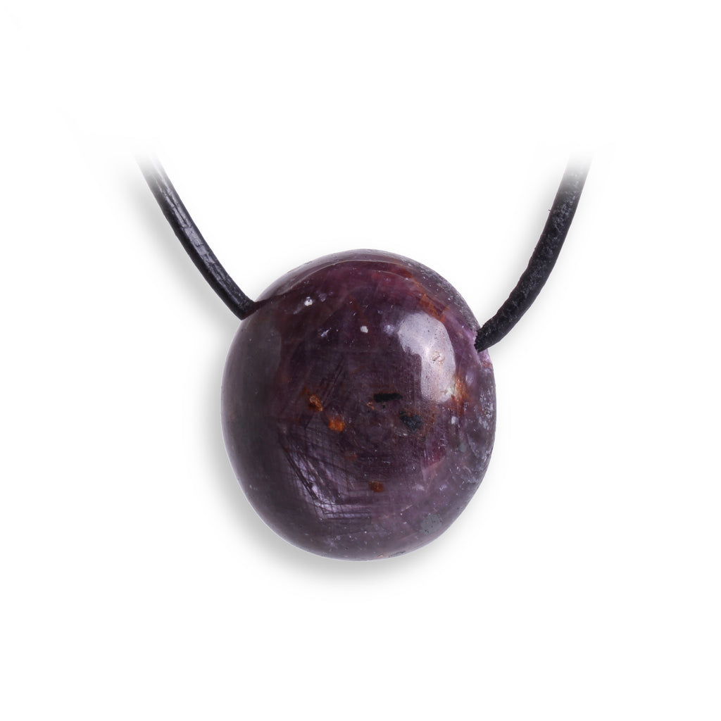 Rubin Trommelstein Anhänger – Echtes Einzelstück mit Lederband, Naturstein Schmuck in Geschenkschachtel