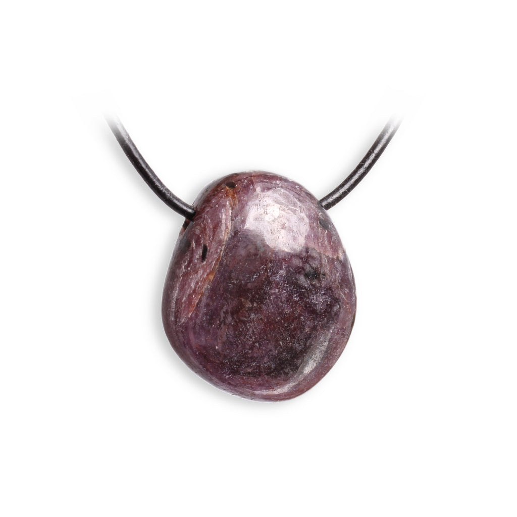 Rubin Trommelstein Anhänger – Echtes Einzelstück mit Lederband, Naturstein Schmuck in Geschenkschachtel