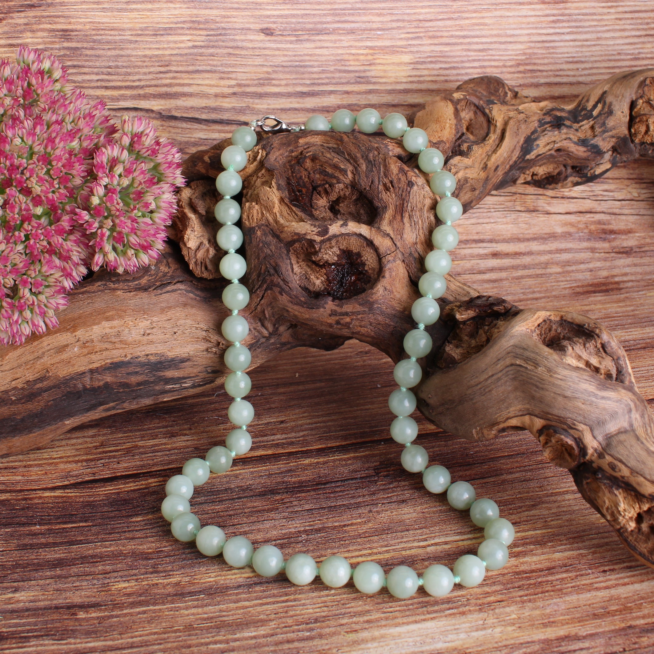 Edle Edelsteinkette: Wunderschöne Kette aus 8 mm Serpentin (China Jade) Perlen – zeitlos, elegant und vielseitig kombinierbar.