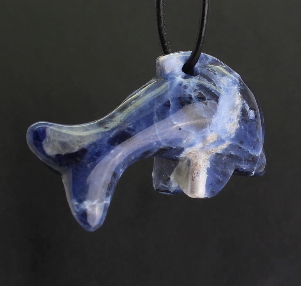 Sodalith Anhänger Delphin gebohrt Delfin Kettenanhänger