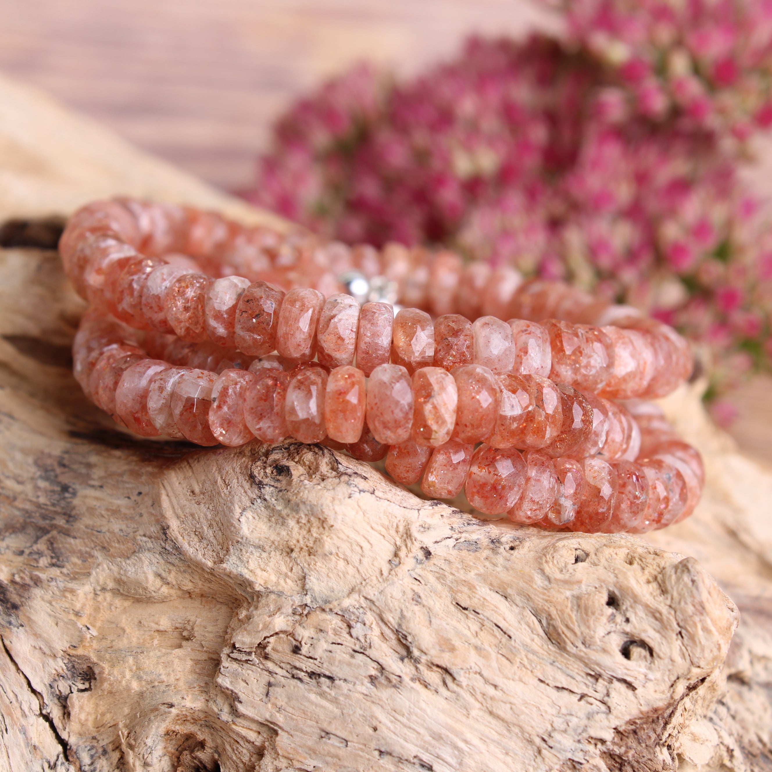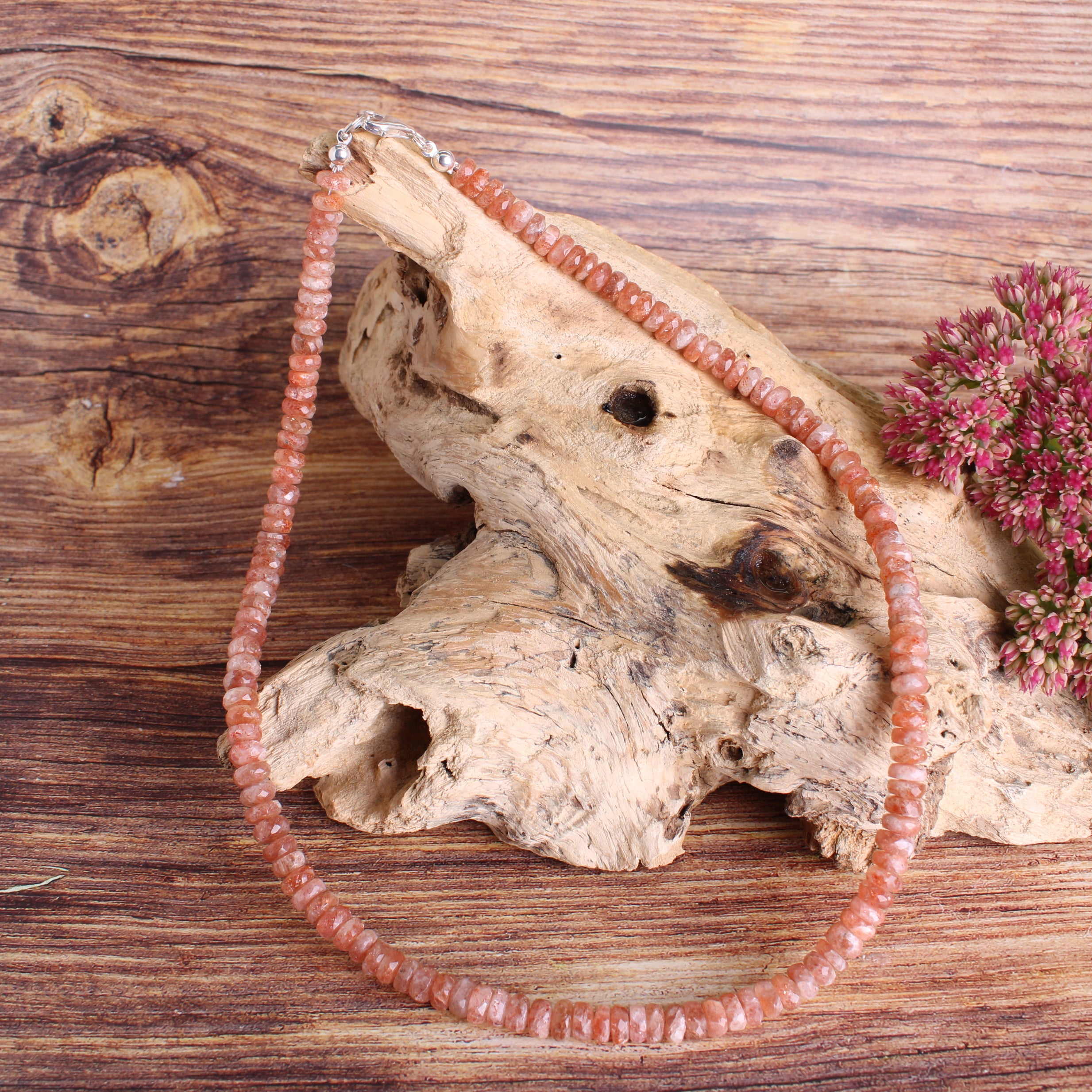 • Edle Edelsteinkette: Wunderschöne facettierte Sonnenstein Buttonkette mit ca. 6 mm Stärke – ein handgearbeitetes Unikat.