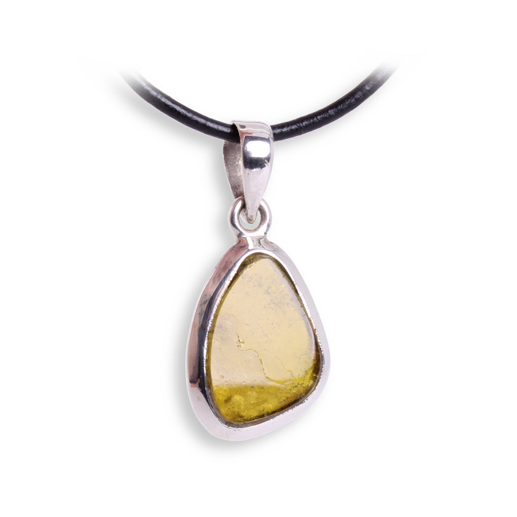 Grüner Turmalin Anhänger – Beidseitig tragbarer Edelstein in 925er Sterling Silber mit Lederband & Geschenkschachtel