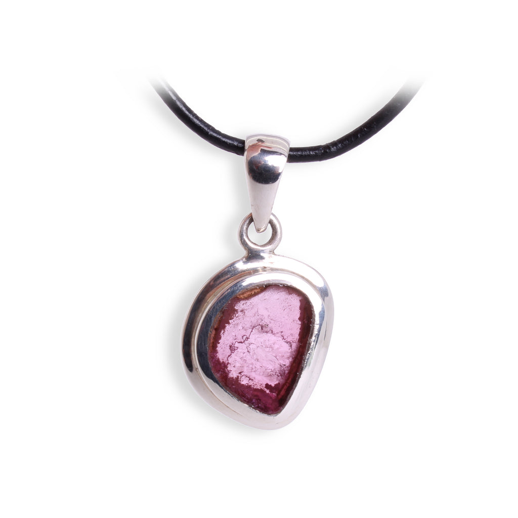 Rosa Turmalin Anhänger – Naturbelassen & poliert in 925er Sterling Silber mit Lederband & Geschenkschachtel
