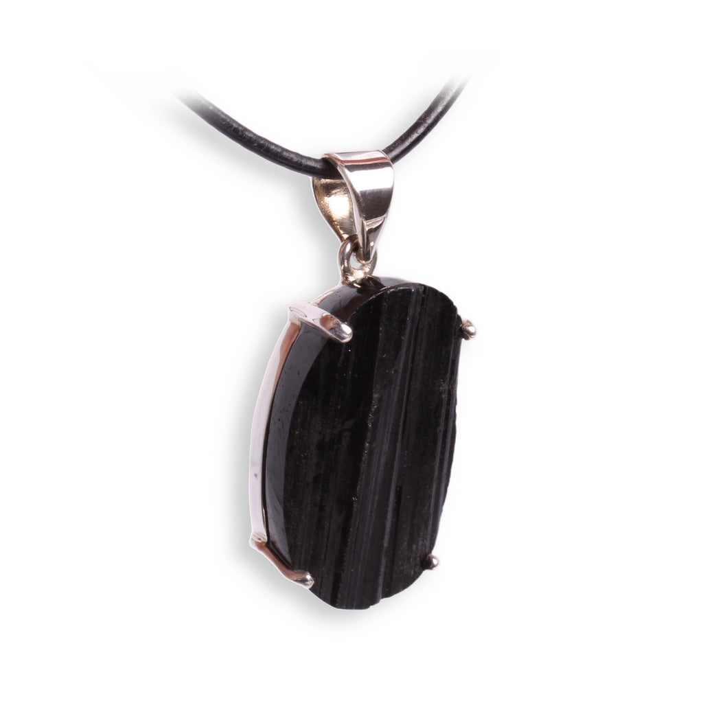 Schwarzer Turmalin Anhänger – Roh-Naturstein im 925er Silber, oval gefasst, ca. 25×15 mm, inkl. Lederband & Geschenkbox