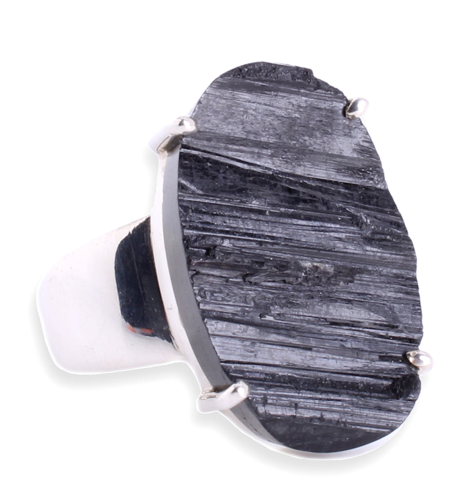 Schwarzer Turmalin Ring – Echter Edelstein in 925er Sterling Silber, naturbelassen & handgefertigt, Ringgröße 59