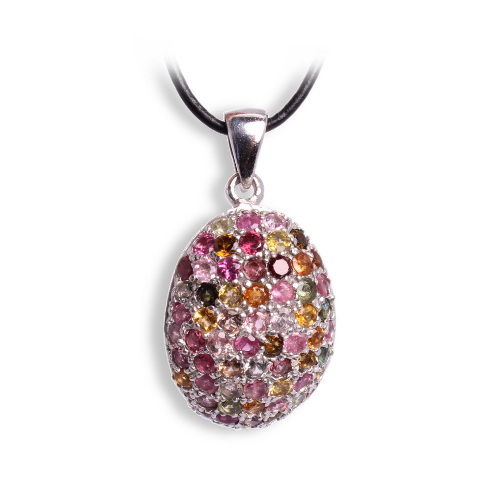 Turmalin Anhänger – Facettierte Regenbogen-Edelsteine in 925er Sterling Silber, handgefasst & mit Lederband, ca. 3,8 cm