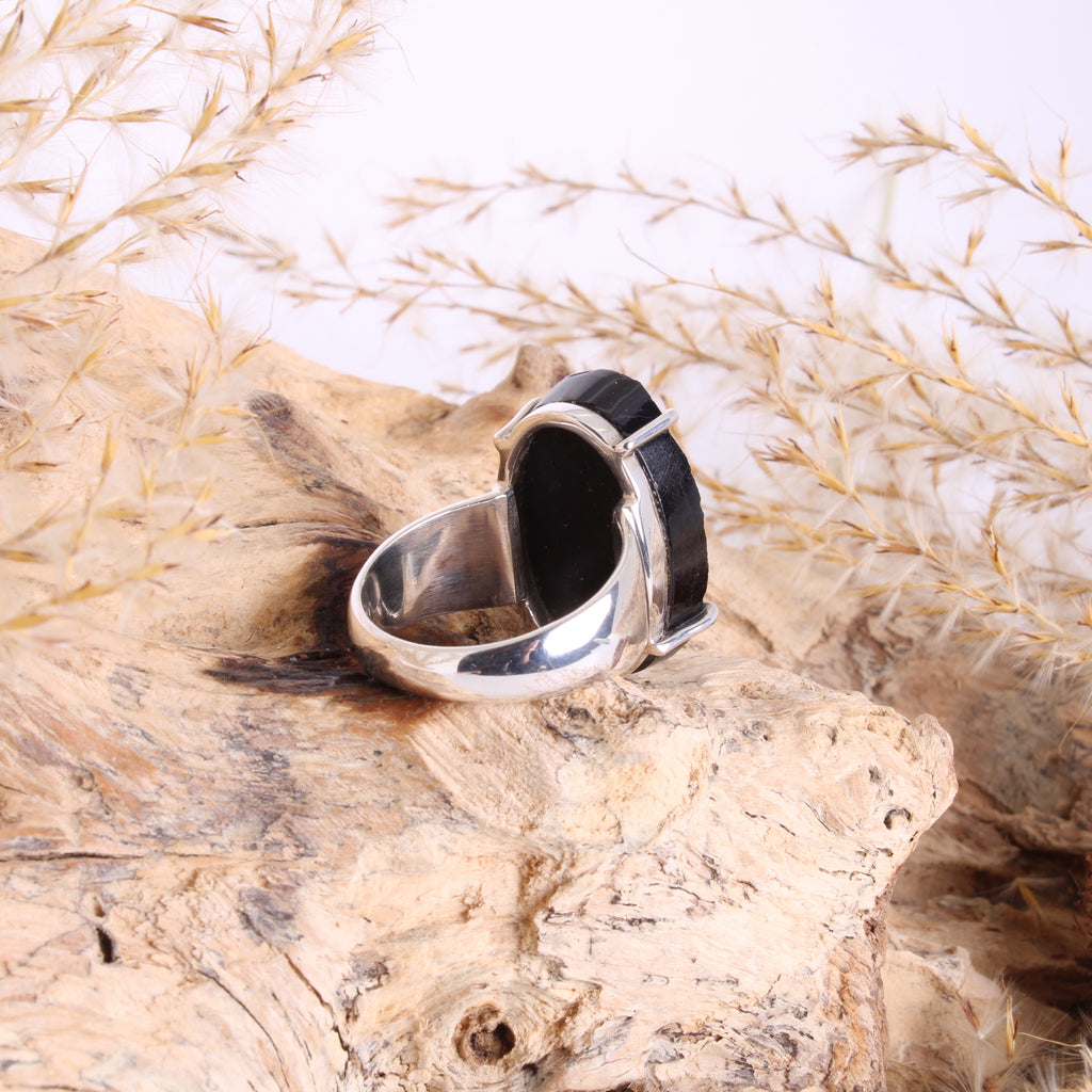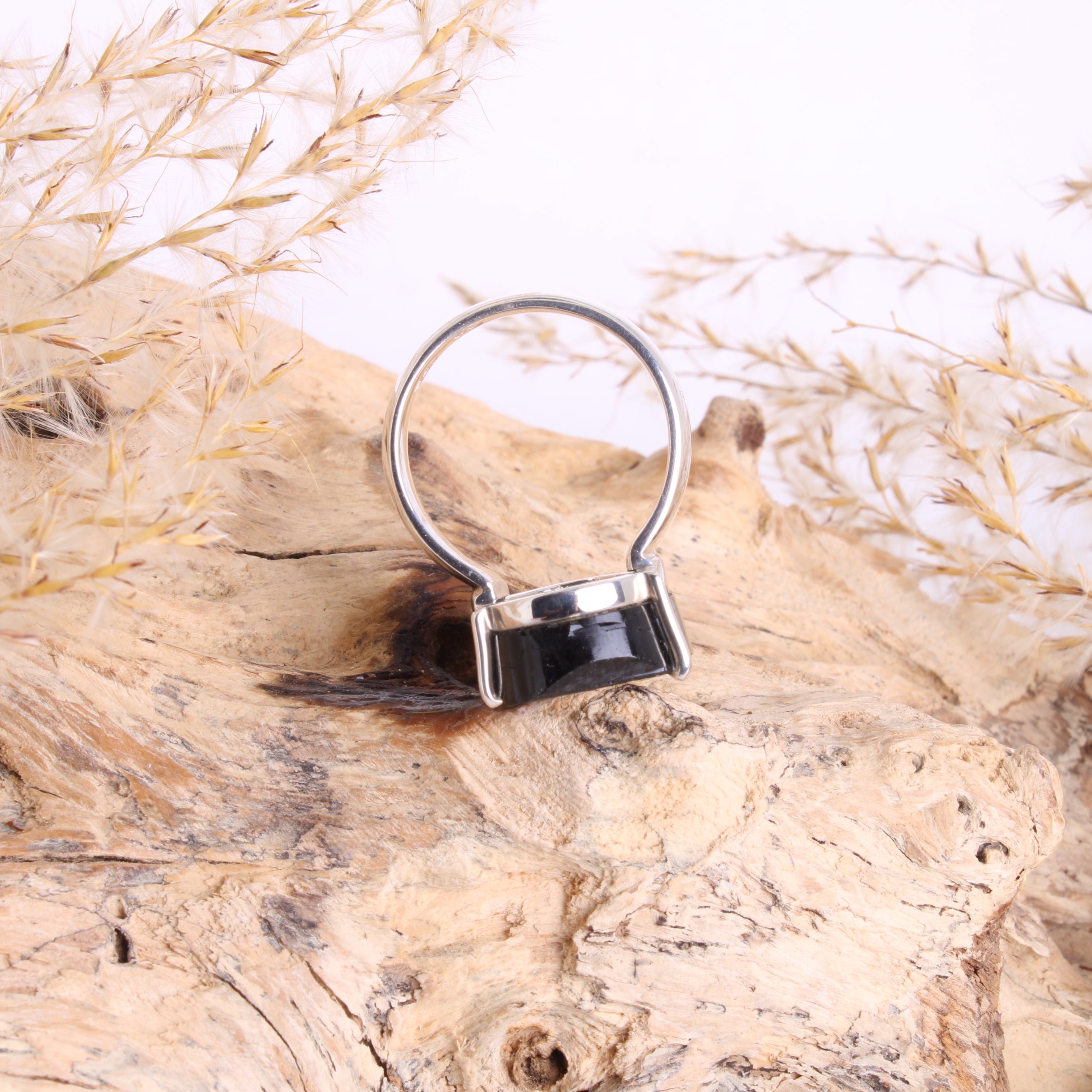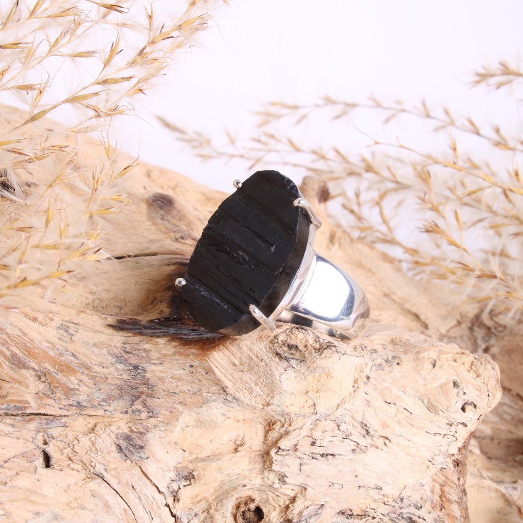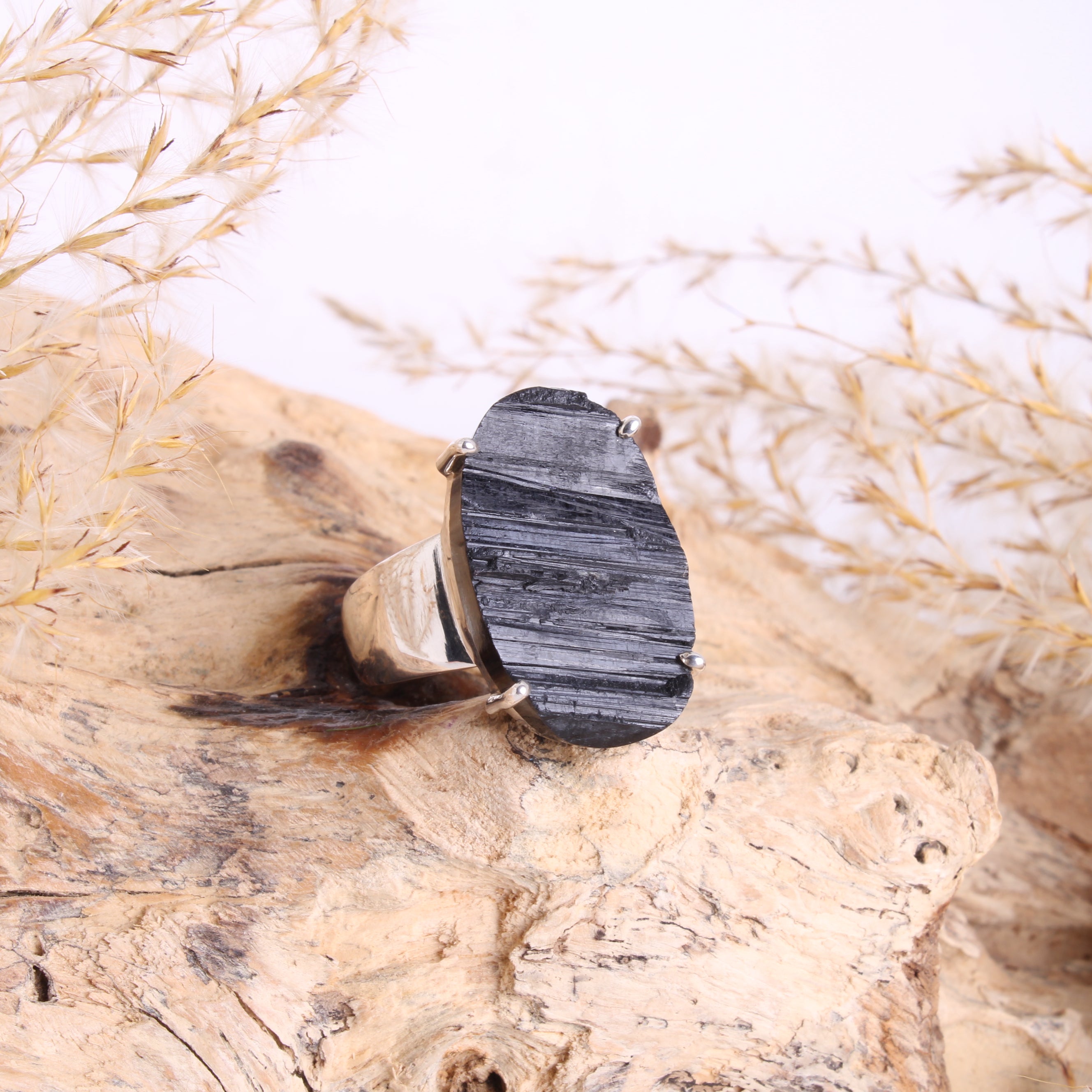 Schwarzer Turmalin Ring – Echter Edelstein in 925er Sterling Silber, naturbelassen & handgefertigt, Ringgröße 59