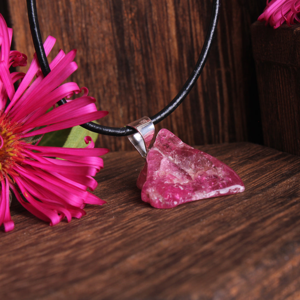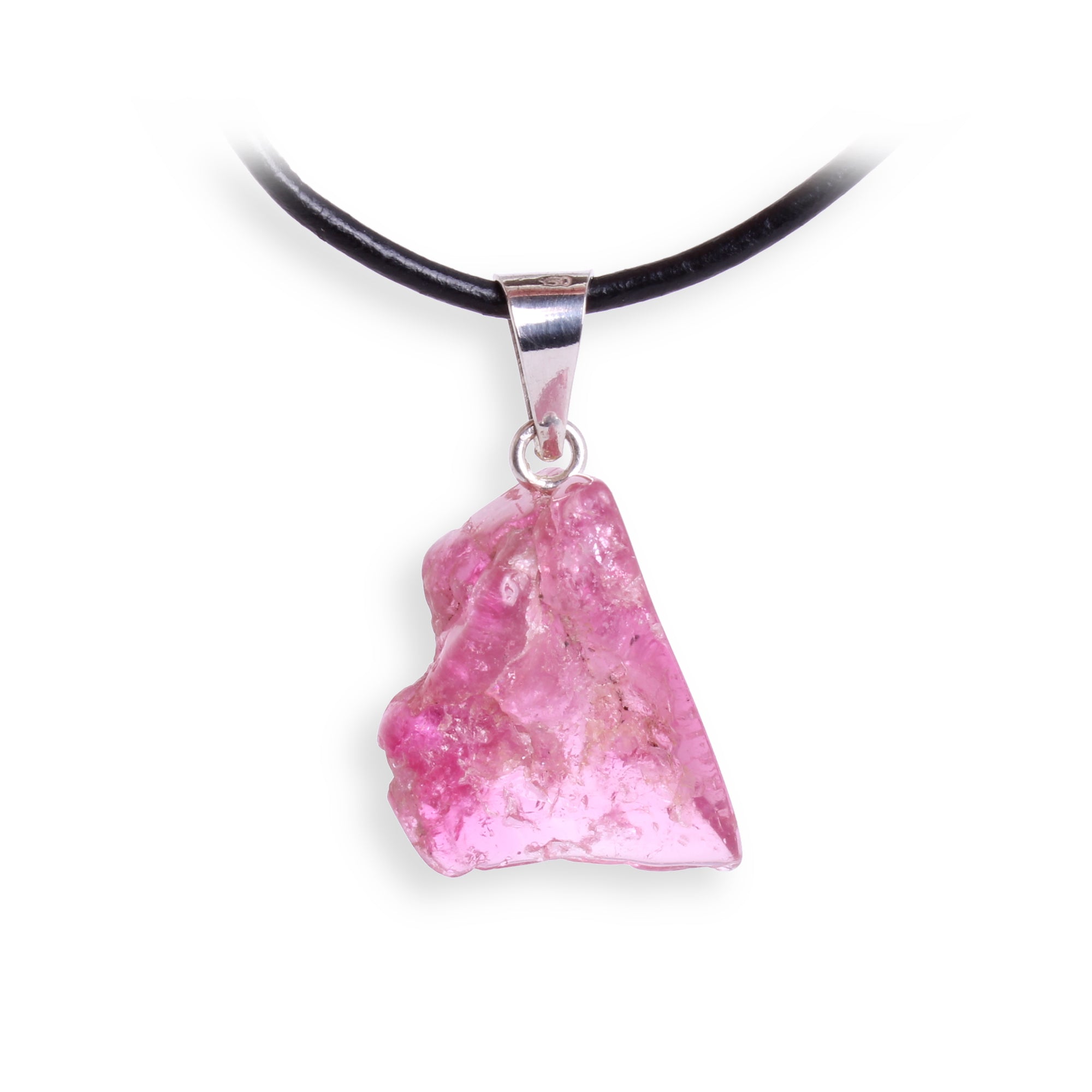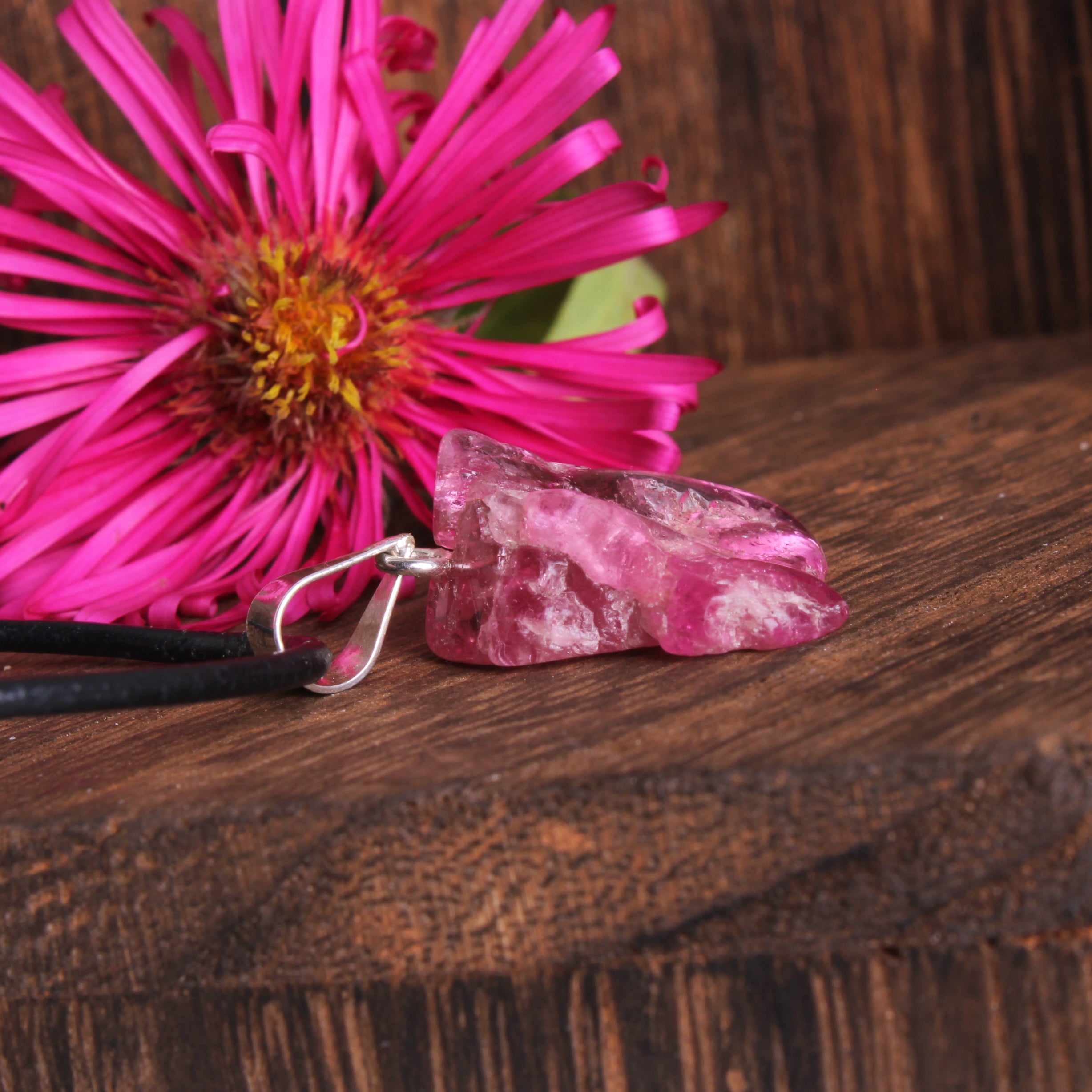 Rosa Turmalin Anhänger – Naturbelassen & poliert in 925er Sterling Silber mit Lederband & Geschenkschachtel