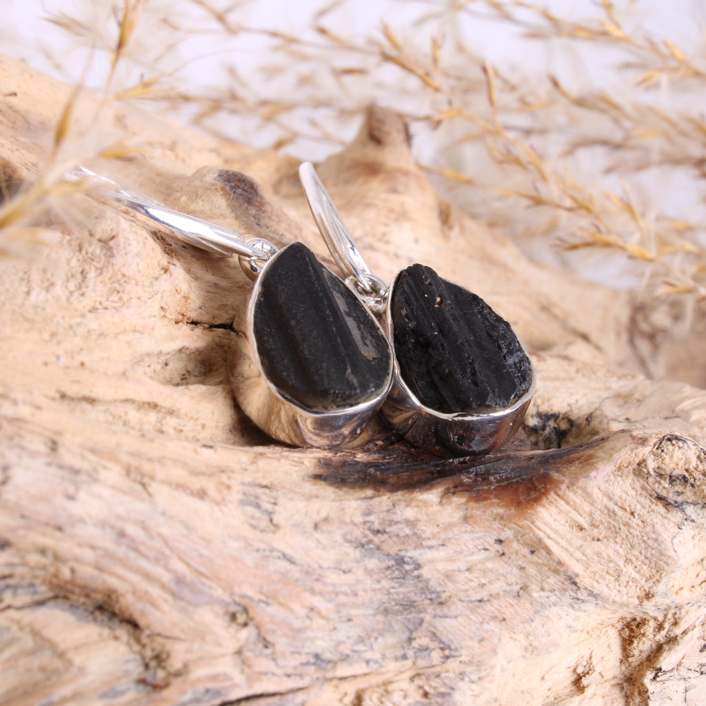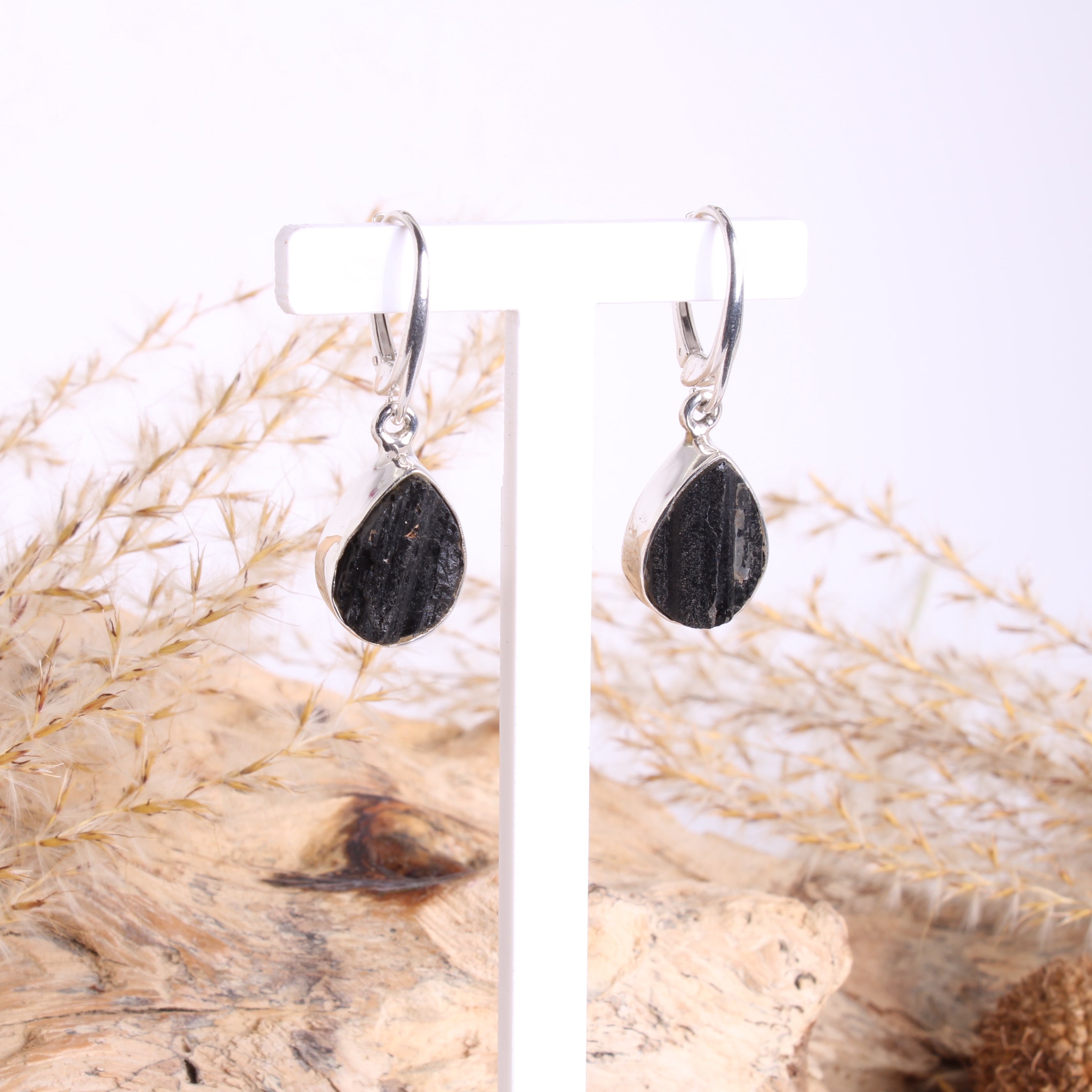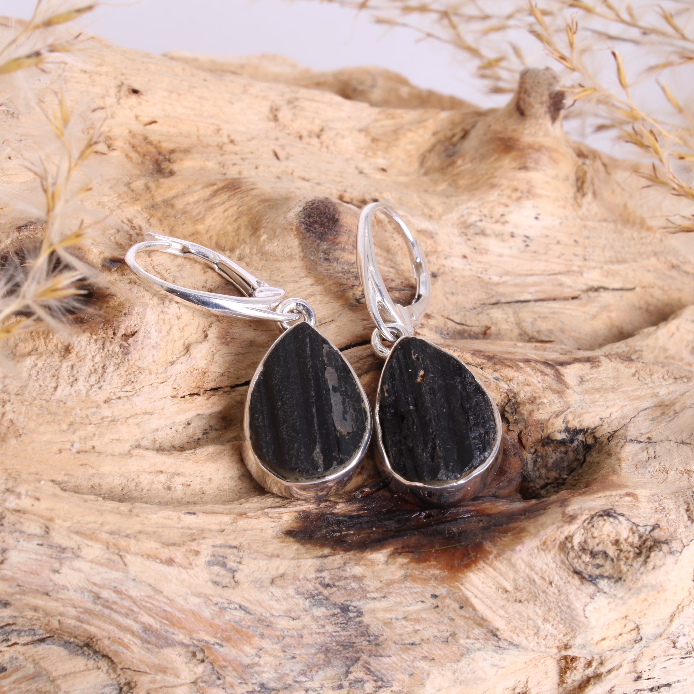 Tropfenohrringe mit schwarzem Turmalin – Edler 925 Silber Schmuck voller Ausdruck