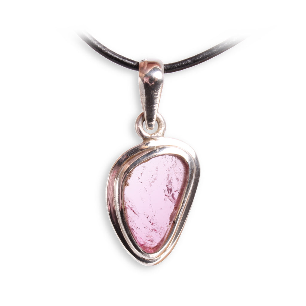 Rosa Turmalin Anhänger – Naturbelassen & poliert in 925er Sterling Silber mit Lederband & Geschenkschachtel
