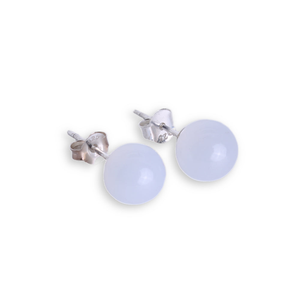 Chalcedon Ohrstecker 8 mm Perlen – Paar durchscheinend hellblau – 925 Sterling Silber Stift & Schraube – Edelstein Schmuck im Organzasäckchen