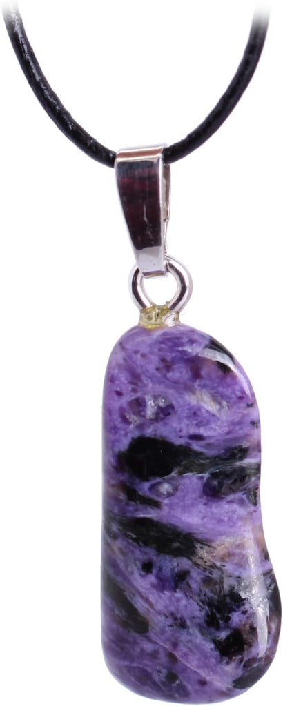 Charoit Trommelstein Anhänger Kettenanhänger 925er Silberöse mit Lederband
