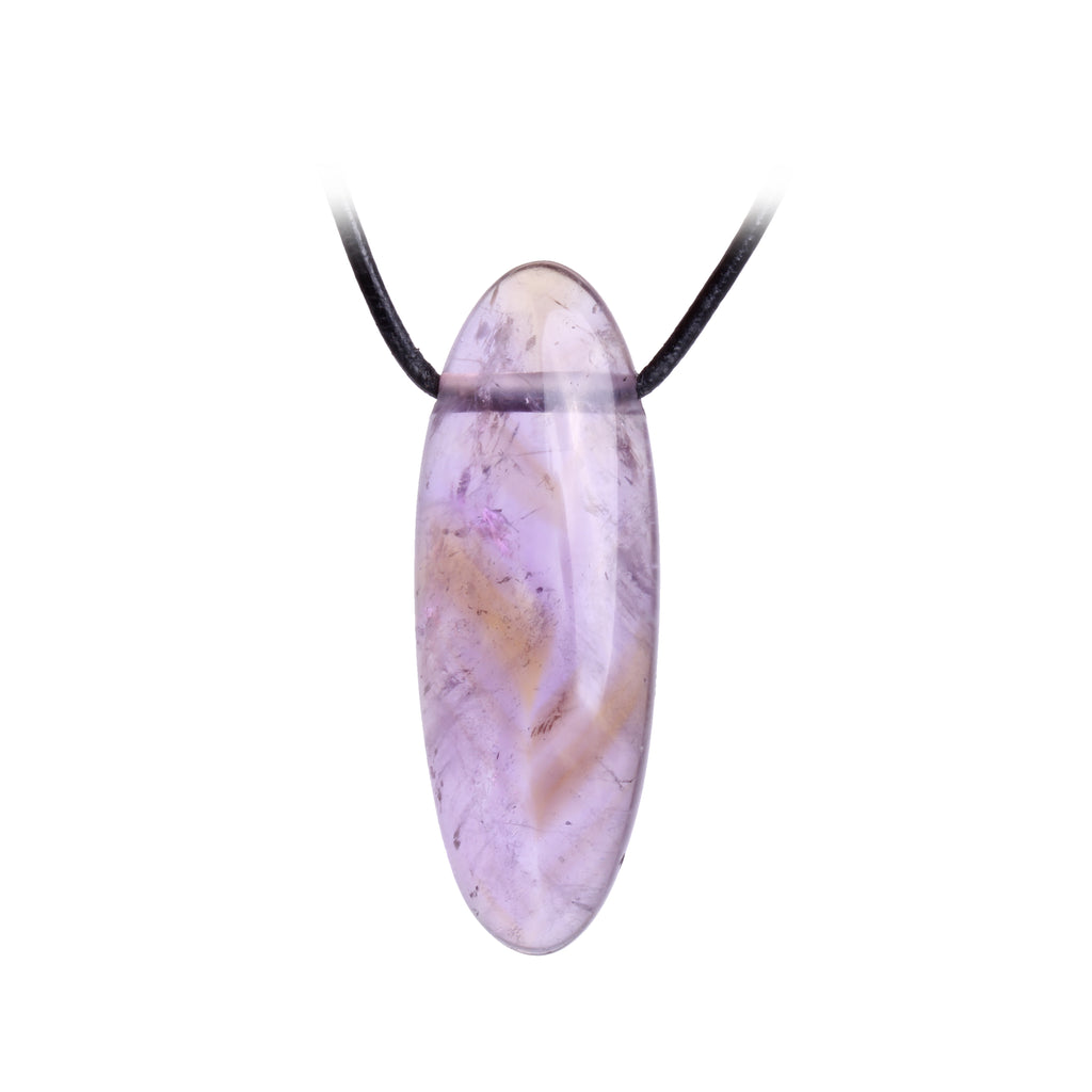 Einzelstück Ametrin Cabochon Anhänger – Handgeschliffener Edelstein, gebohrt & mit Lederband in Geschenkschachtel