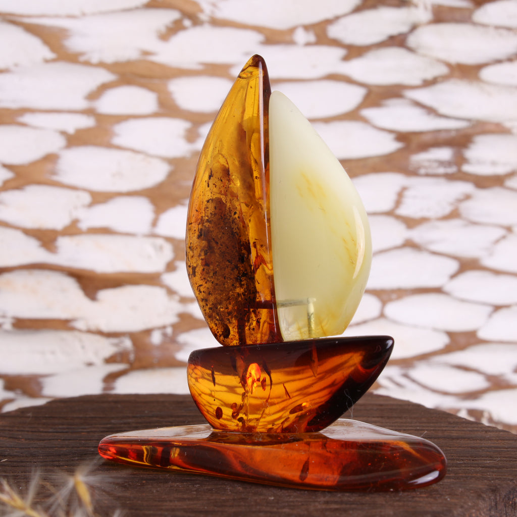 Elegantes Bernstein Deko Segelboot Schiff – Maritimer Charme in edler Handarbeit