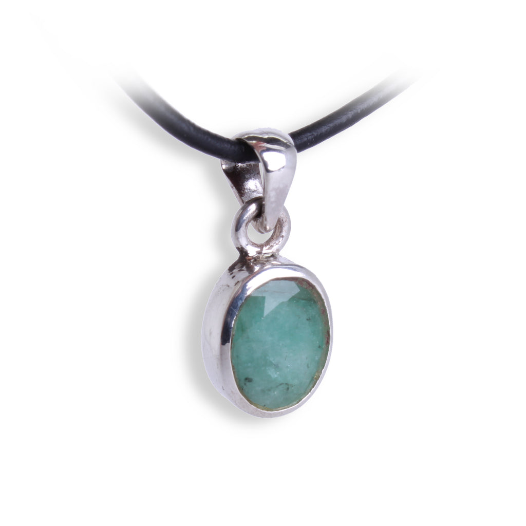 Eleganter Smaragd Anhänger oval facettiert aus 925 Sterling Silber kleiner grüner Edelstein Anhänger für Damen zartes Schmuckstück