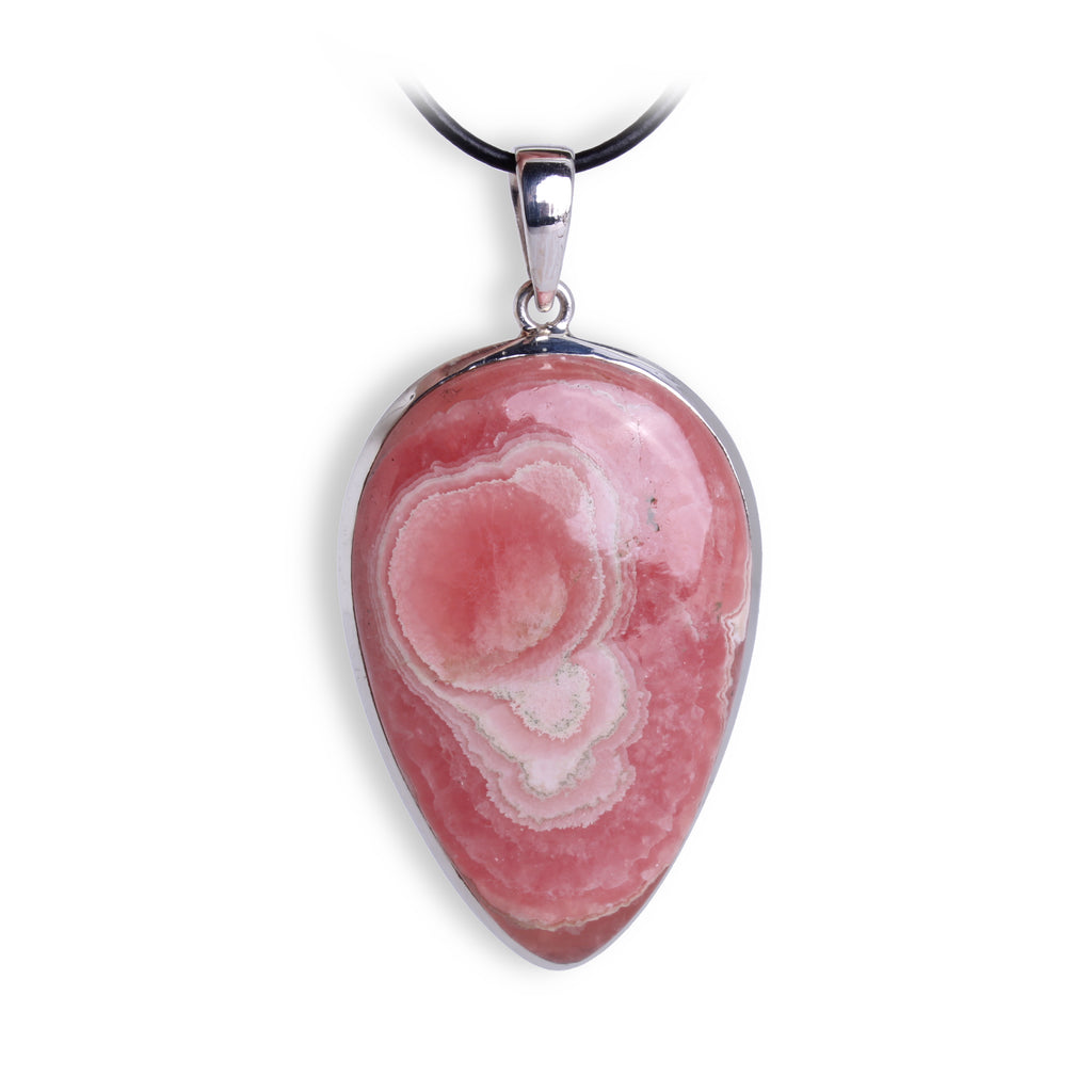 Rhodonit Anhänger Tropfen Kettenanhänger mit Lederband …