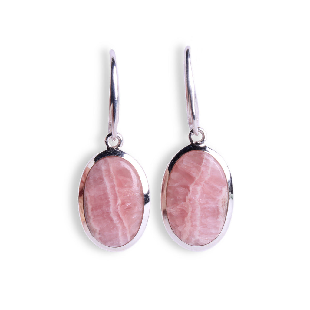 Rhodochrosit Ohrhänger 925 Sterling Silber Ovale Form Klappbrisuren Edelstein Schmuck Damen Einzelstück mit Geschenkbox