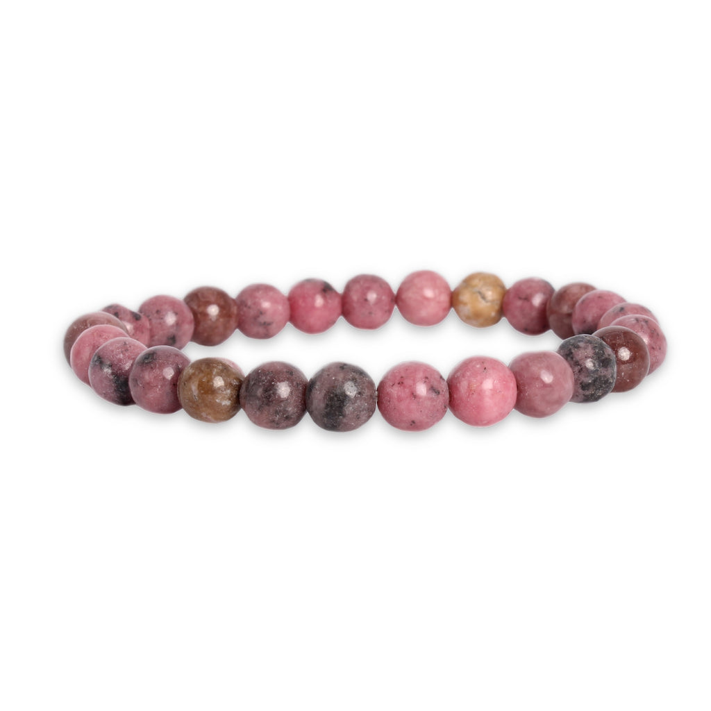 Rhodonit Armband – 8 mm Naturstein-Perlenarmband ca. 19 cm, elastisches Stretcharmband, Edelstein-Unikat
