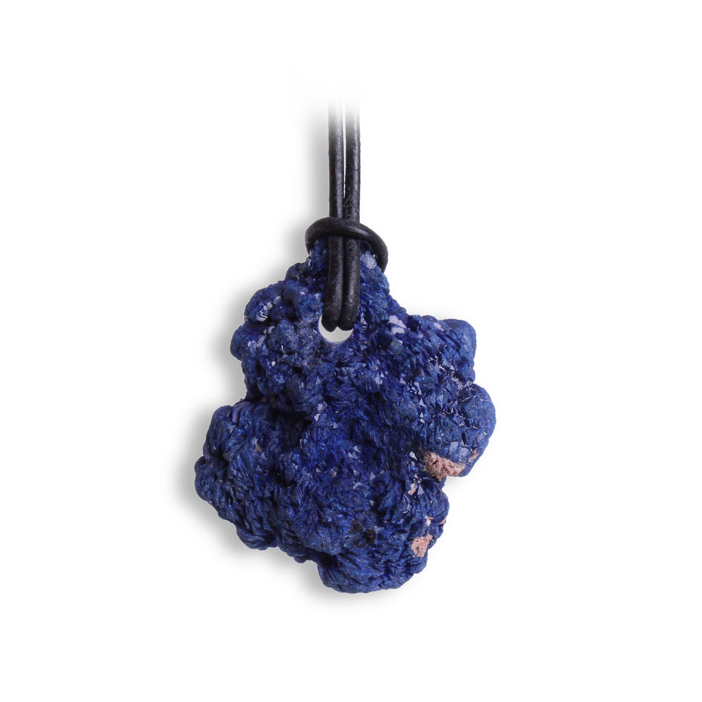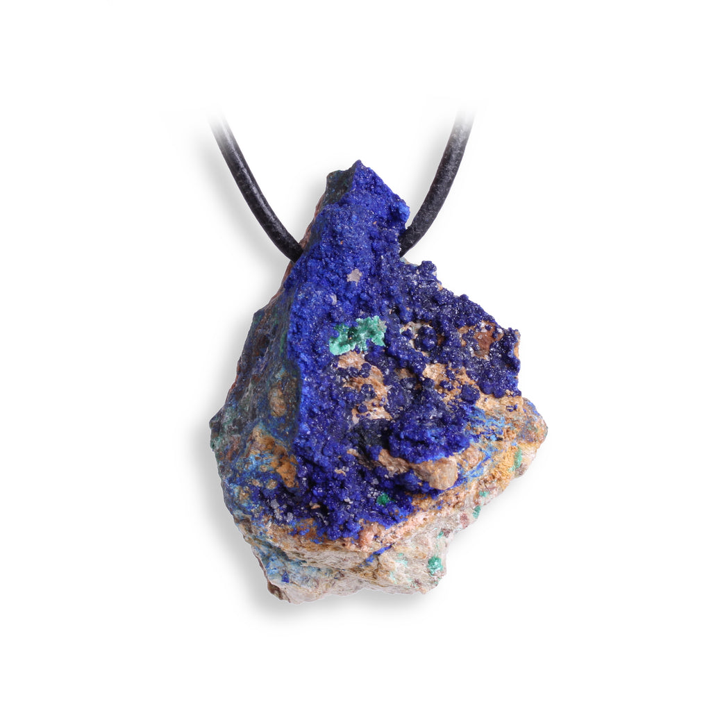 Azurit Rohstein Kristall Rohstück Anhänger Kettenanhänger Hals Schmuck echter Edelstein mit Lederband - Einzelstück