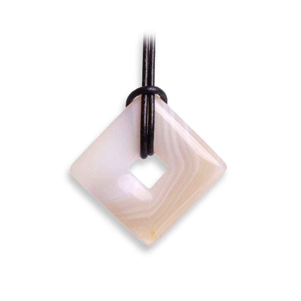Achat Square Donut Anhänger – Echter Edelstein-Anhänger mit Lederband, ca. 37 × 37 mm, im Organzasäckchen