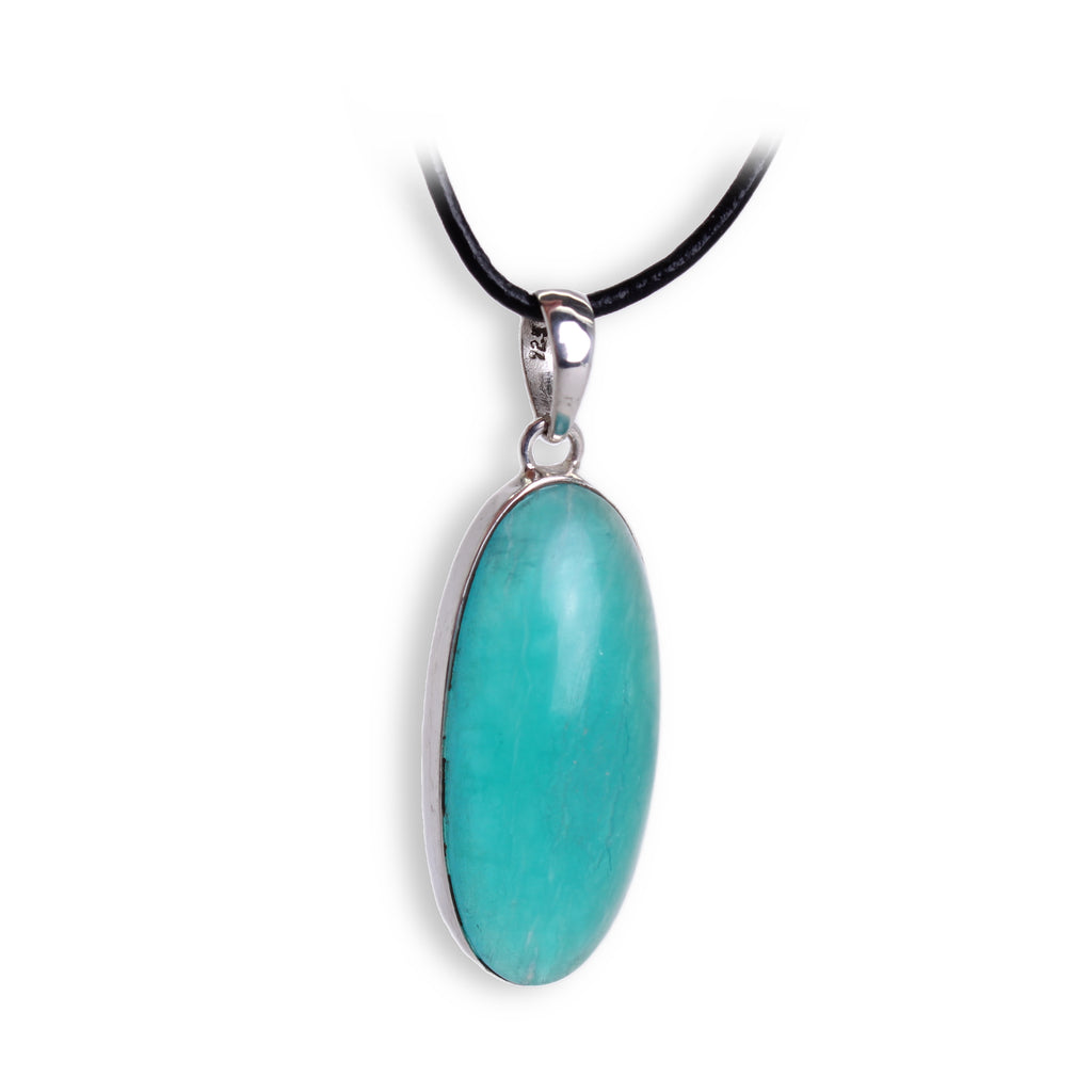 Amazonit Anhänger 925 Silber – Cabochon-Form – mit 1 m schwarzem Lederband & Geschenkbox – Edler Edelstein-Anhänger