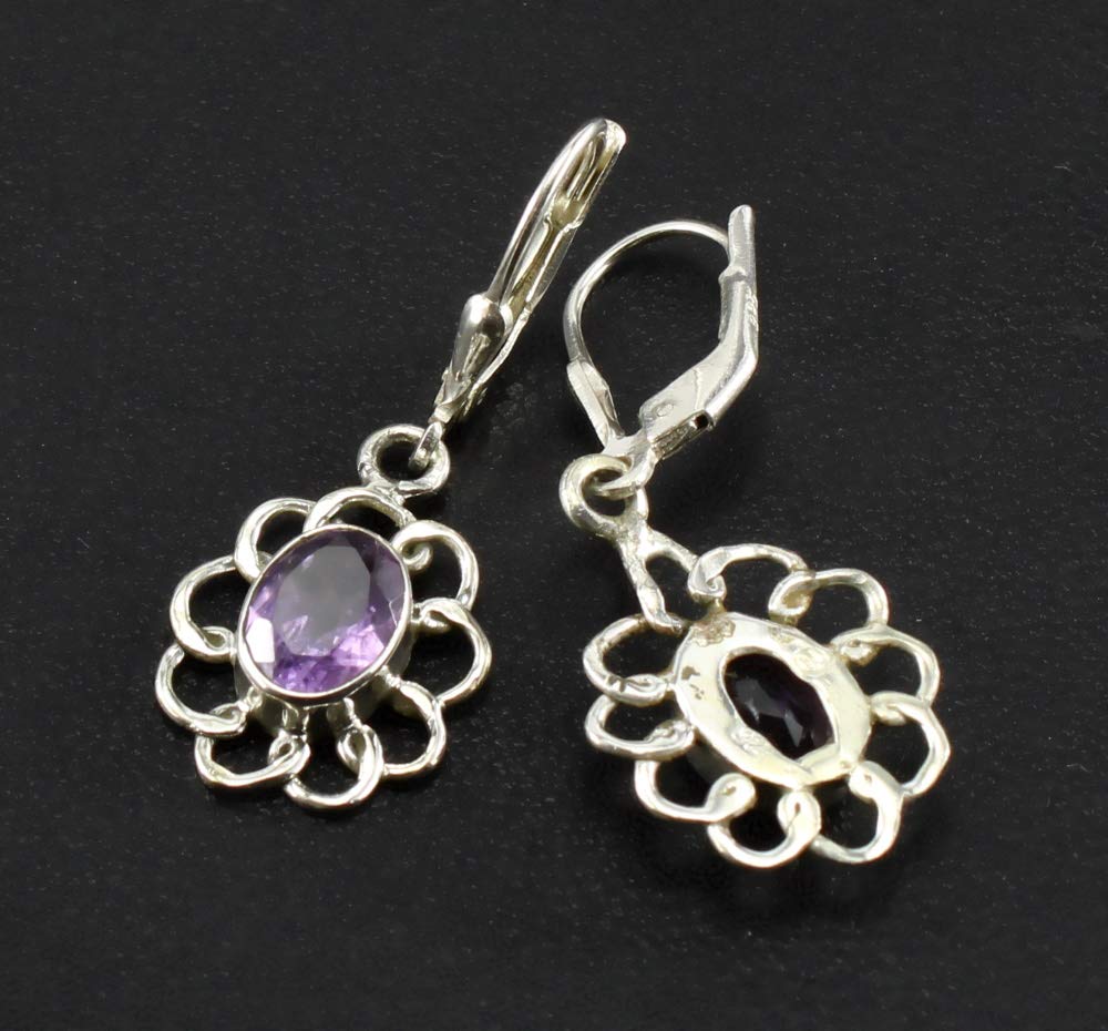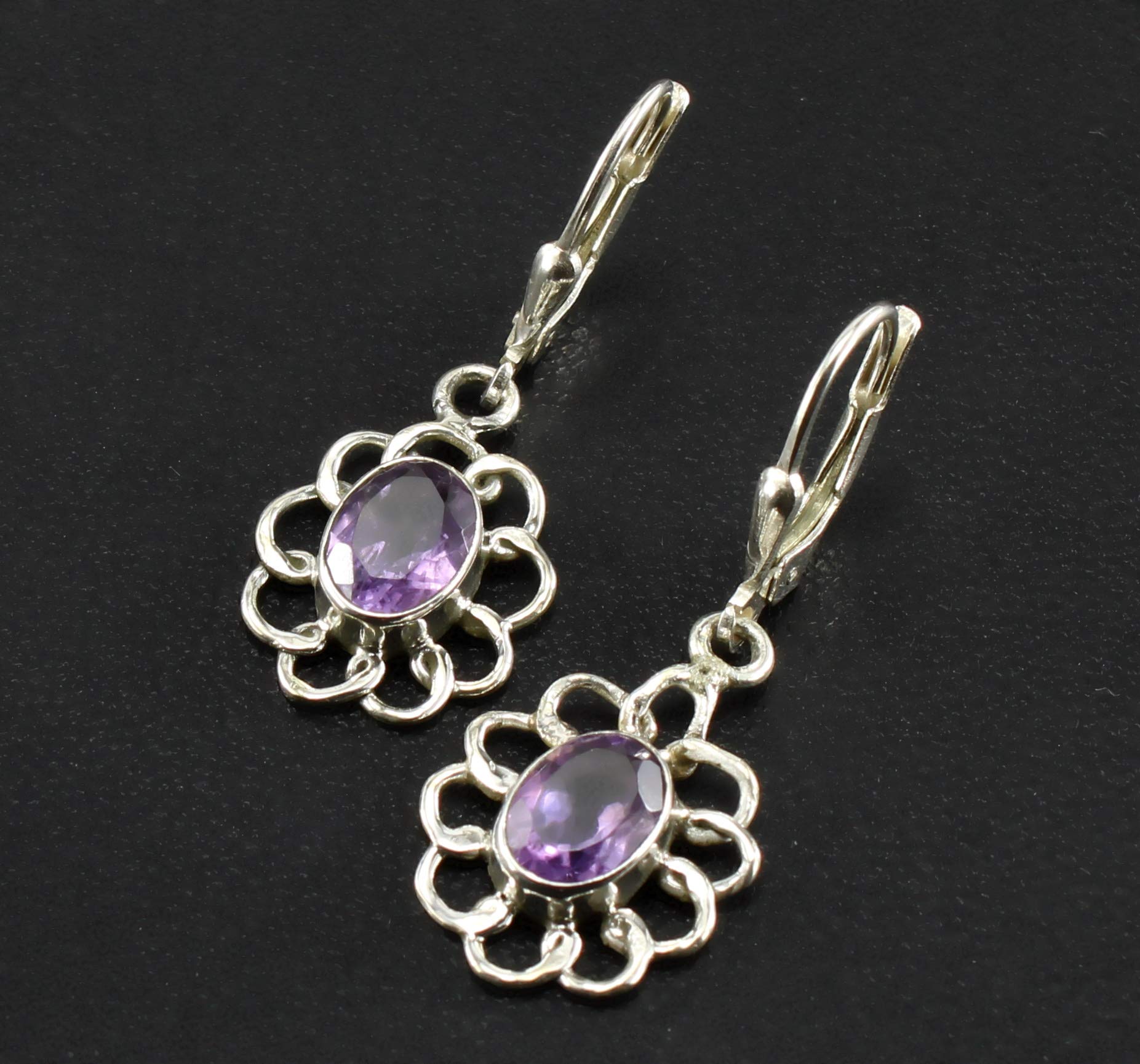 Facettierte Amethyst Ohrhänger – Ovaler Schliff – 925er Sterling Silber – Elegante Damenohrringe – Lieferung in Geschenkschachtel