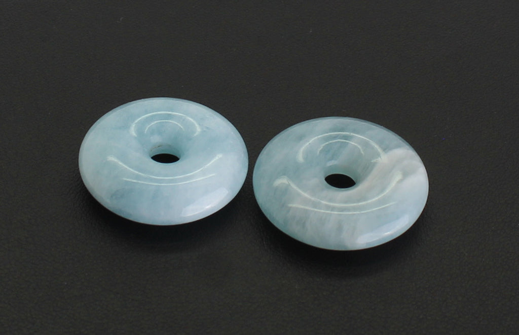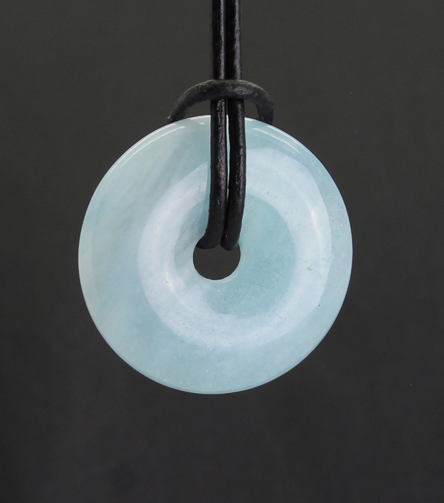Unser kleiner Aquamarin Donut Anhänger aus echtem Naturstein besticht durch seine zarte, hellblaue Farbe und die liebevolle Verarbeitung.