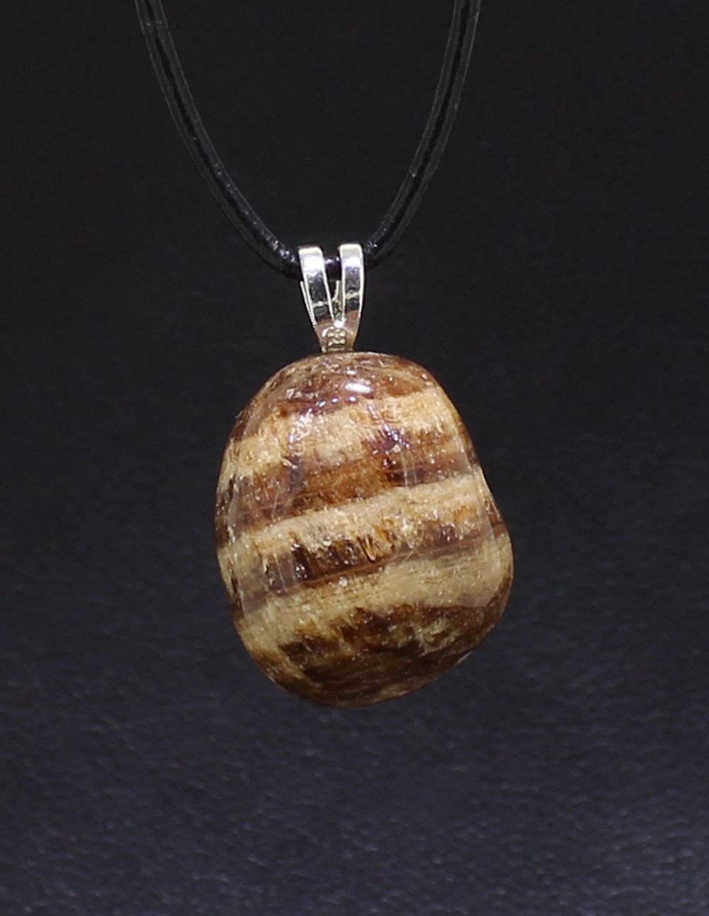 Aragonit Trommelstein Anhänger Kettenanhänger 925er Silberöse mit Lederband …