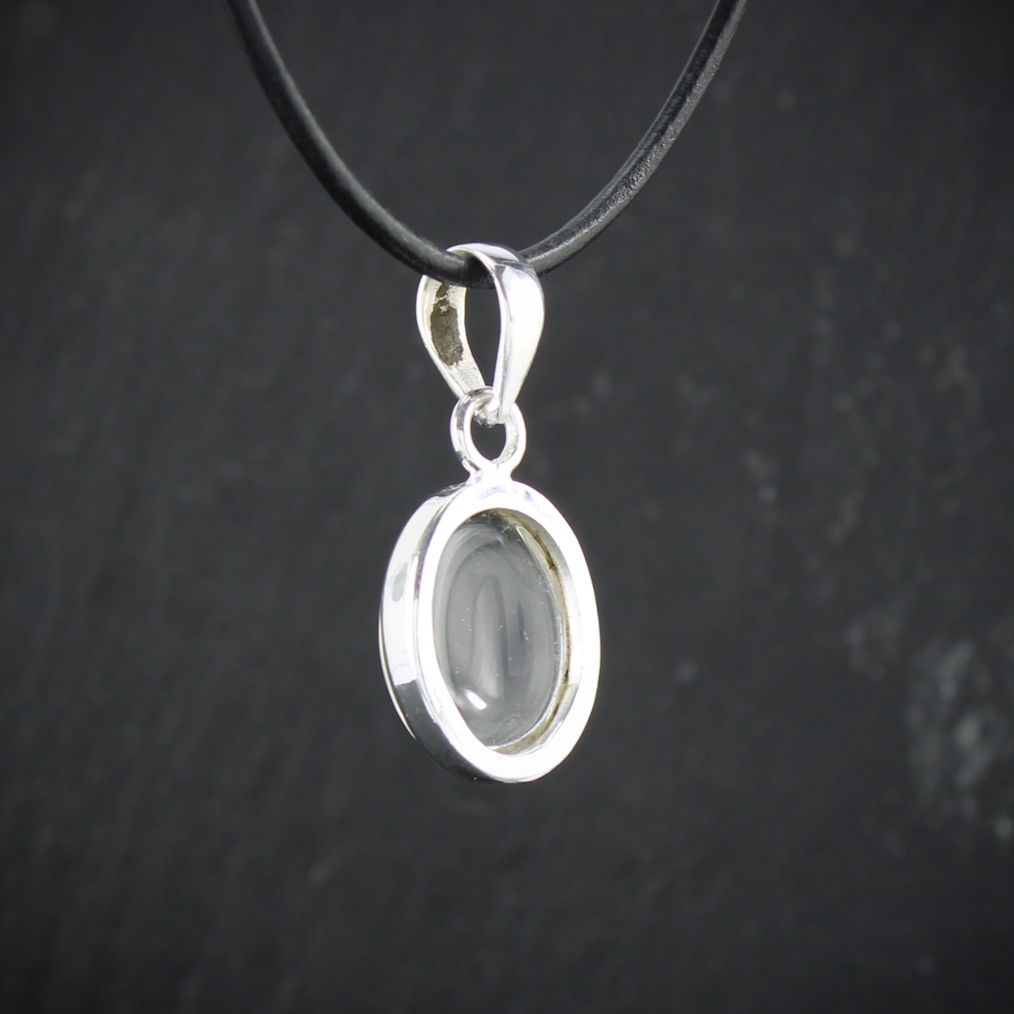 • Sie erhalten hier den abgebildeten Bergkristall Edelstein Anhänger in Cabochon-Form.