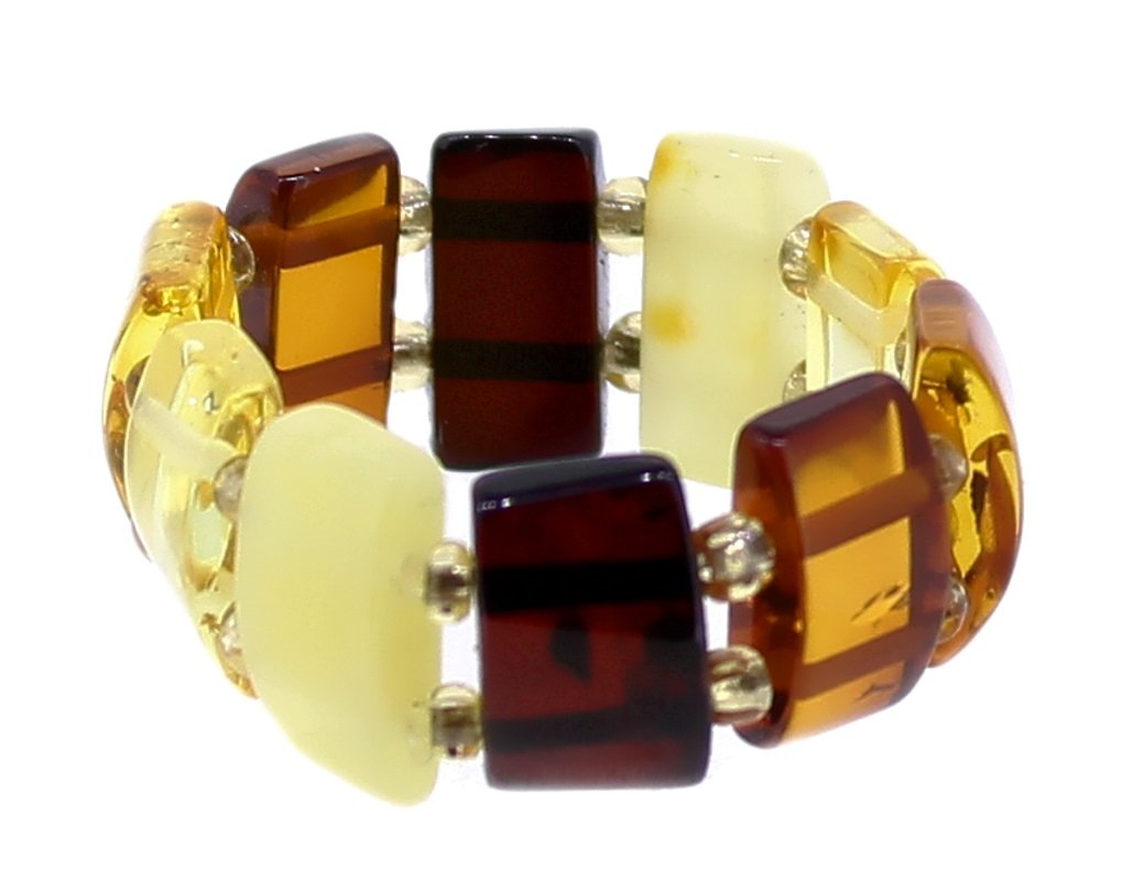Der Ring besteht aus echtem Naturbernstein in einer faszinierenden Farbvielfalt – von hellem Goldgelb über warmen Honig bis hin zu tiefem Cognac. Jedes einzelne Element wird sorgfältig von Hand poliert, sodass der Stein seinen charakteristischen, sonnigen Glanz entfalten kann.