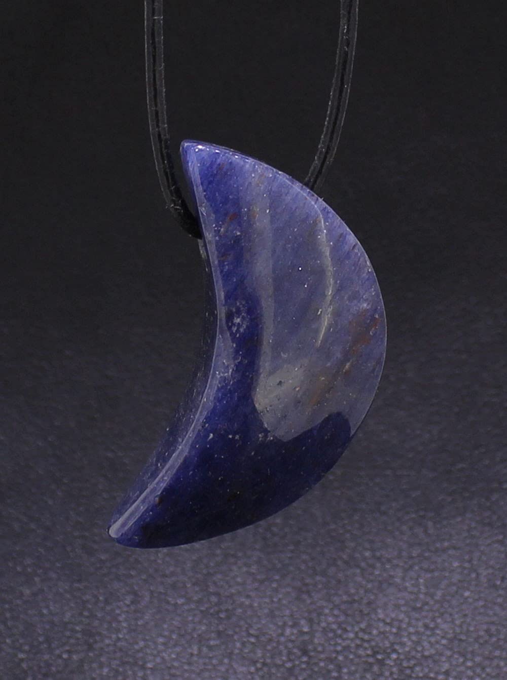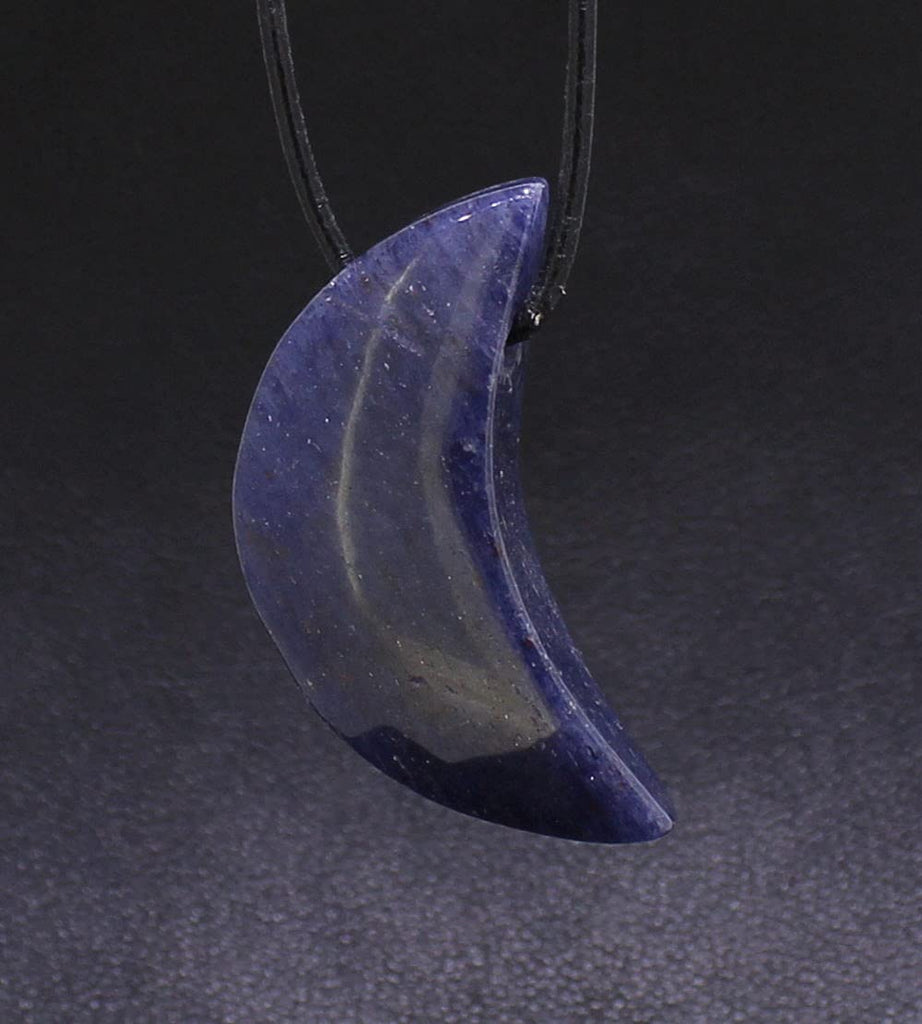 Blauquarz Anhänger Kettenanhänger Halbmond Mond mit Lederband