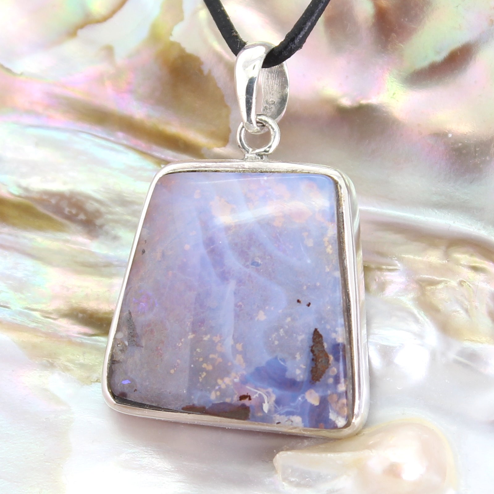 - Sie erhalten den hier abgebildeten Anhänger aus dem Edelstein Boulderopal.
