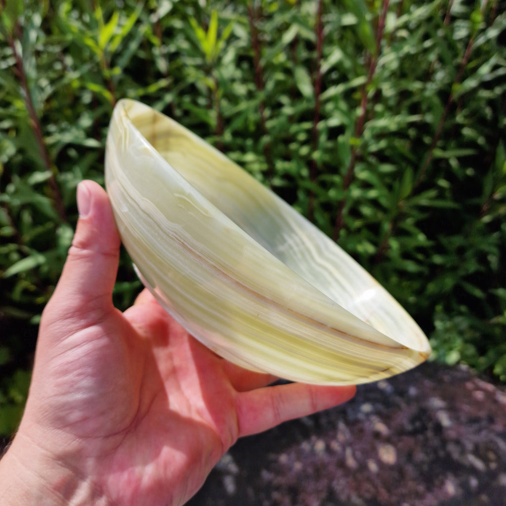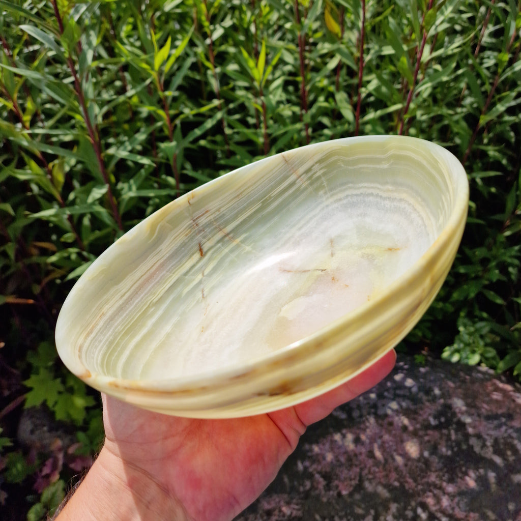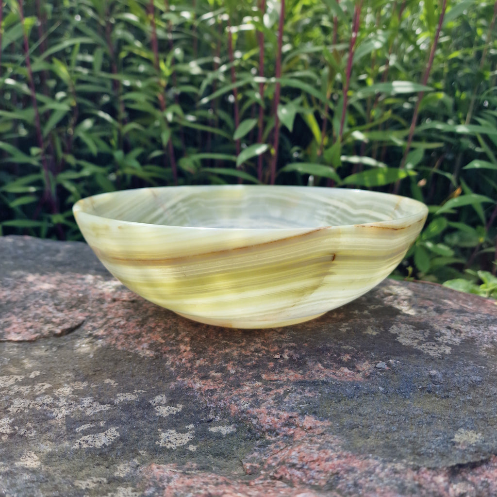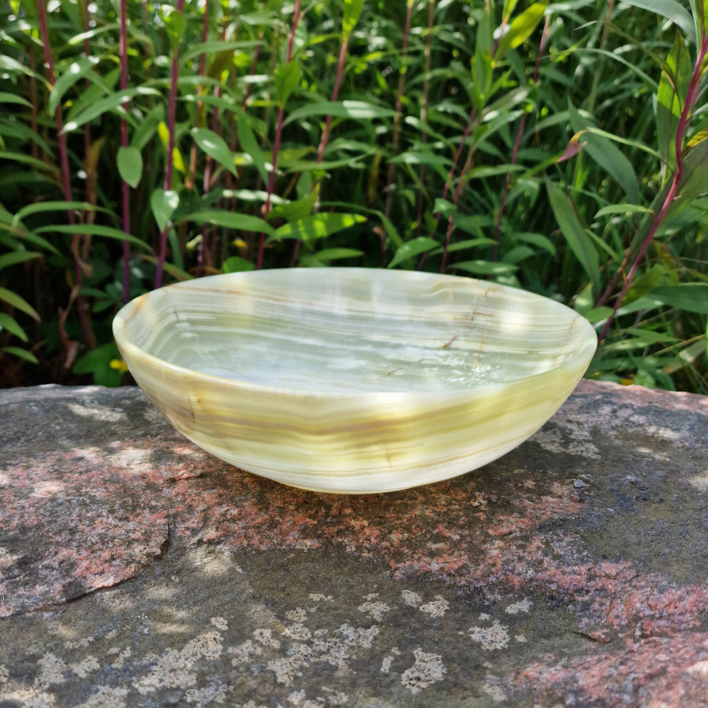 Sie erhalten eine Schale aus poliertem Onyxmarmor – ein echtes Unikat!