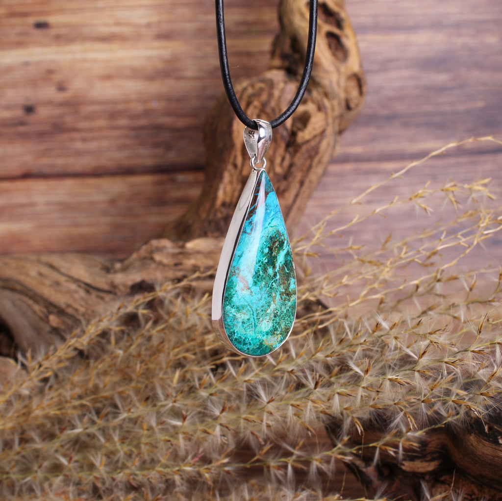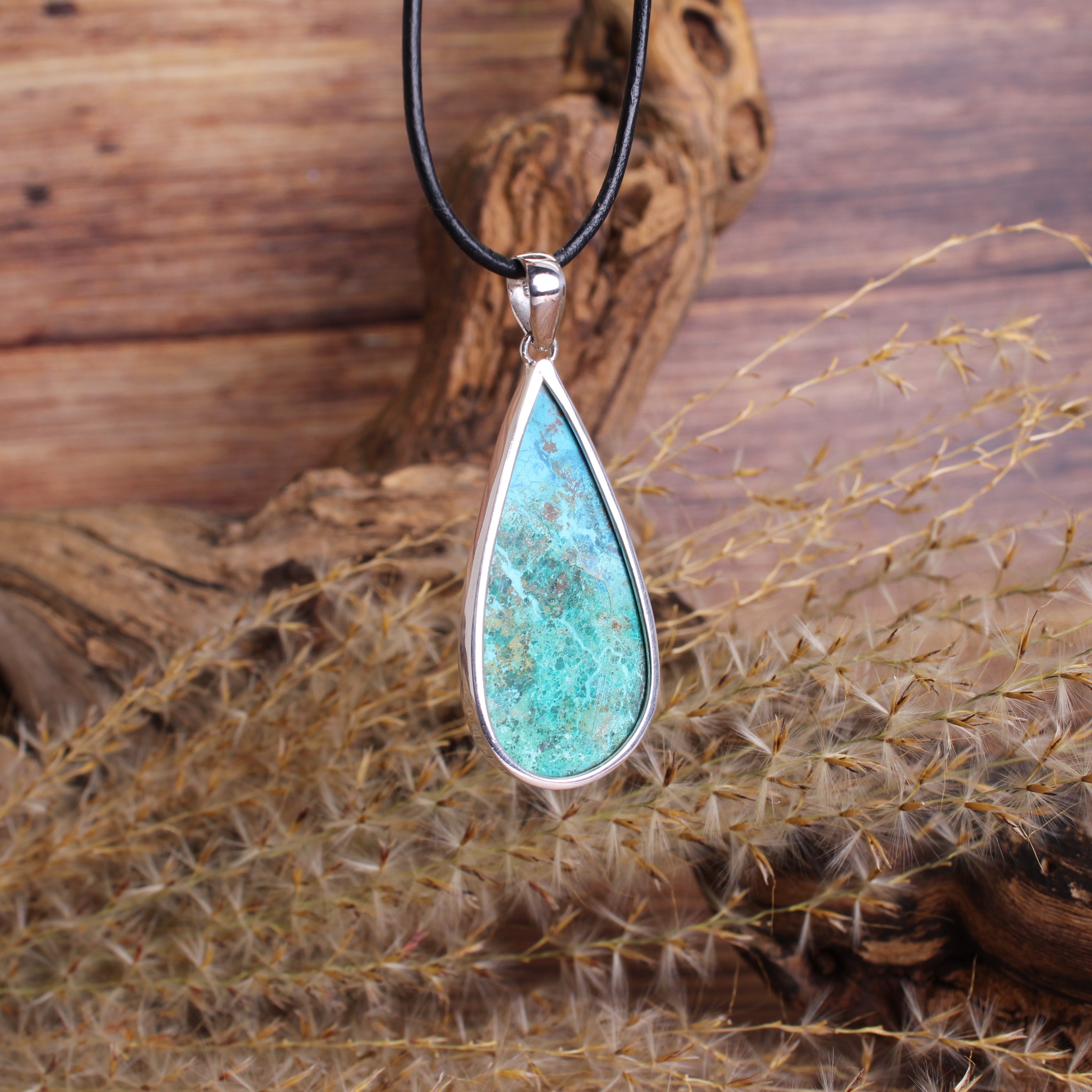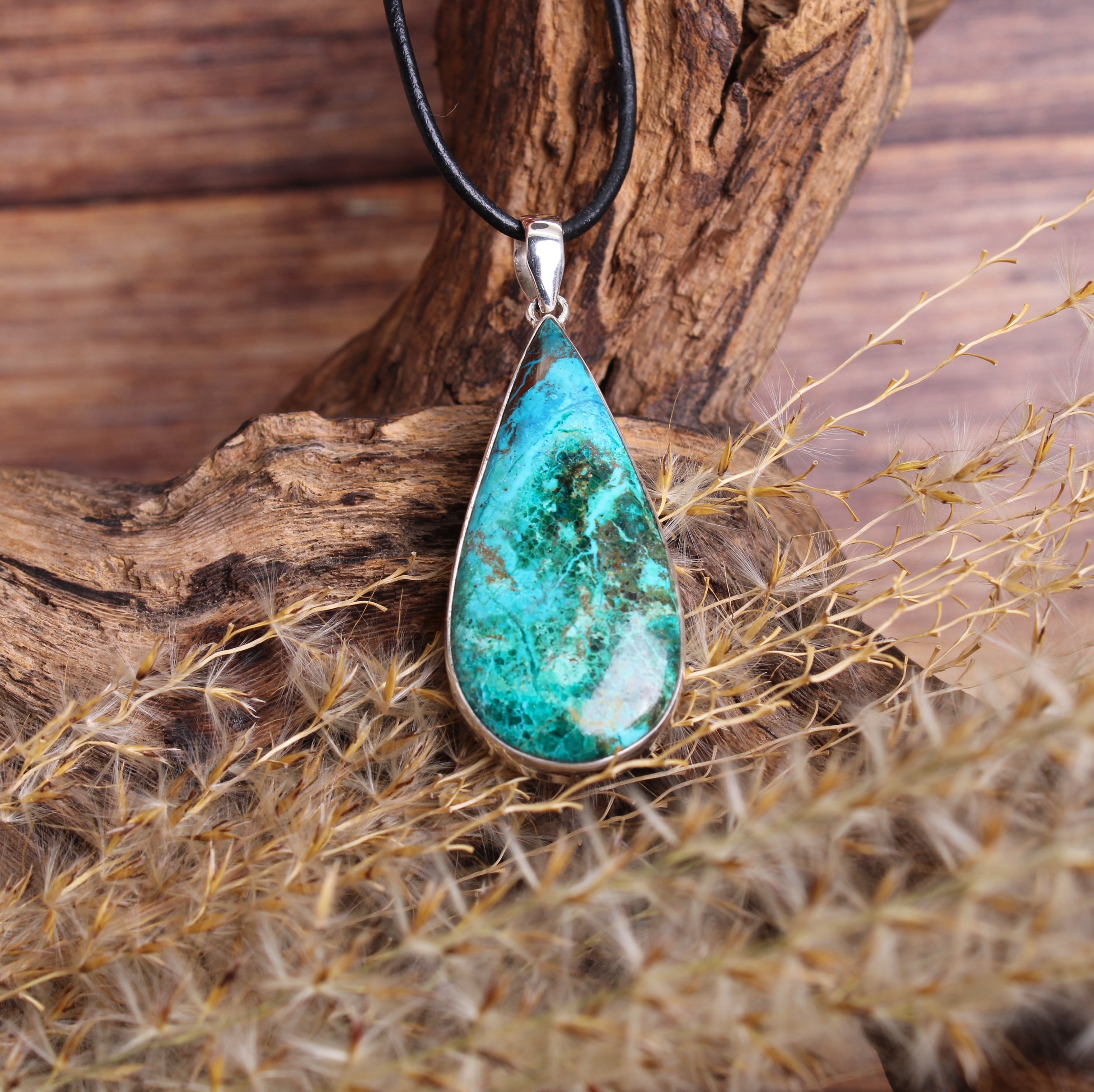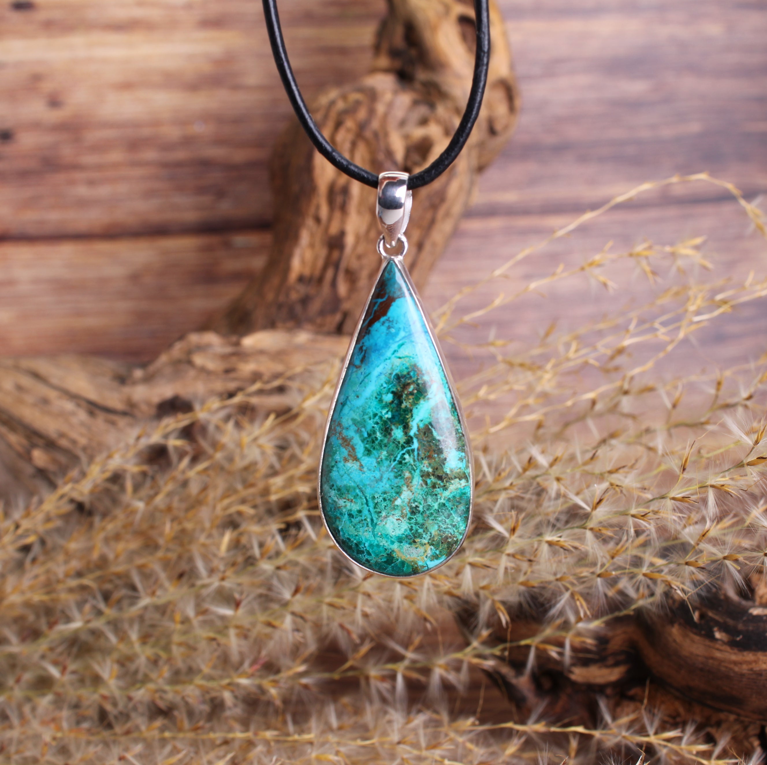 Chrysokoll Edelstein Anhänger Ketten Hals Schmuck 925er Sterlingsilber