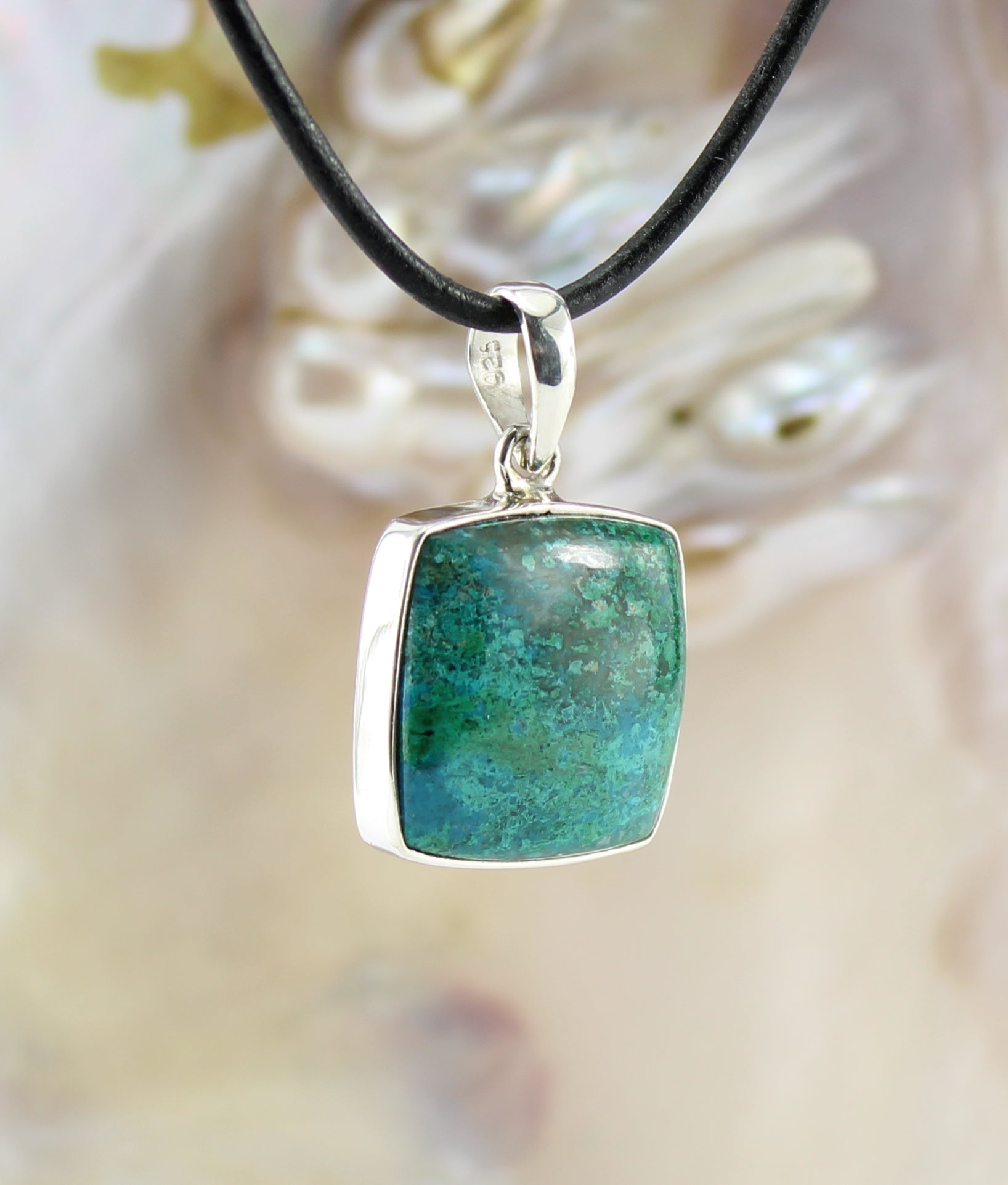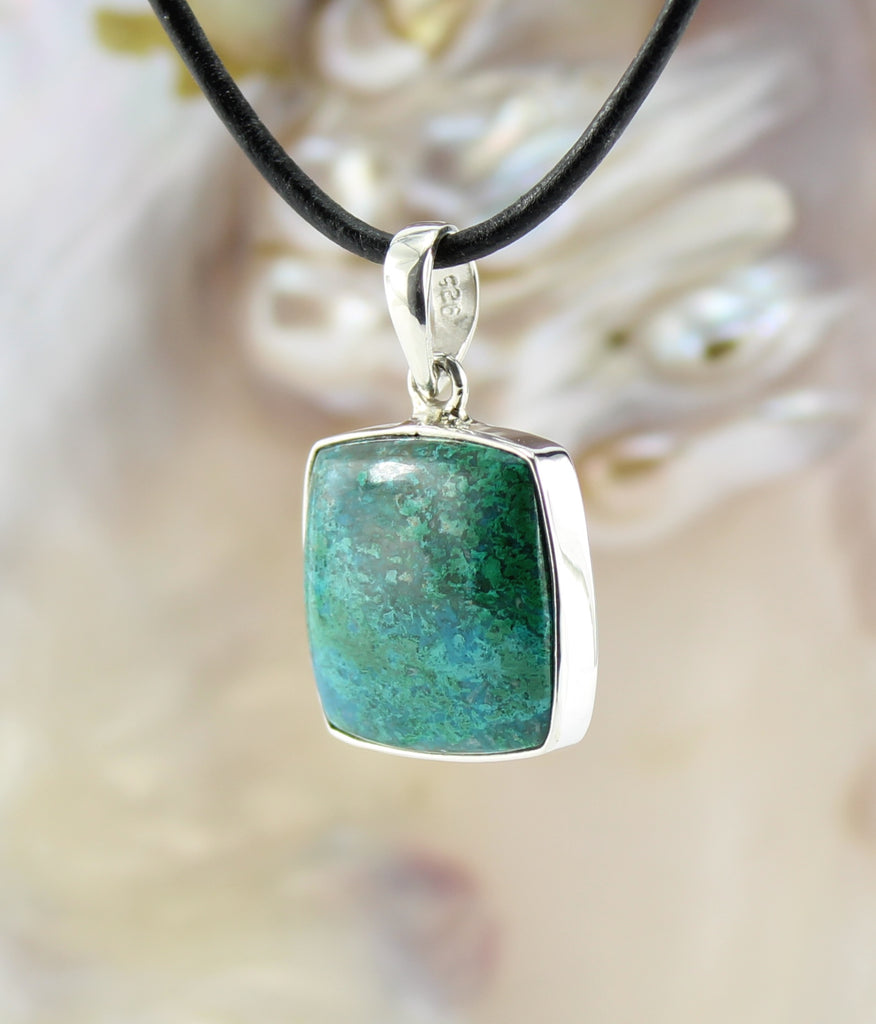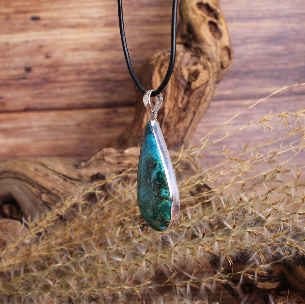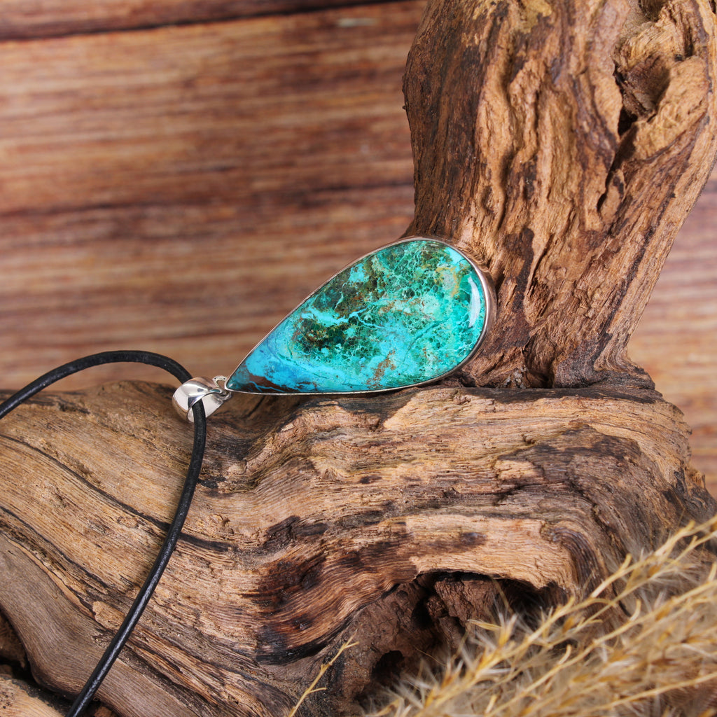 Chrysokoll Edelstein Anhänger Ketten Hals Schmuck 925er Sterlingsilber