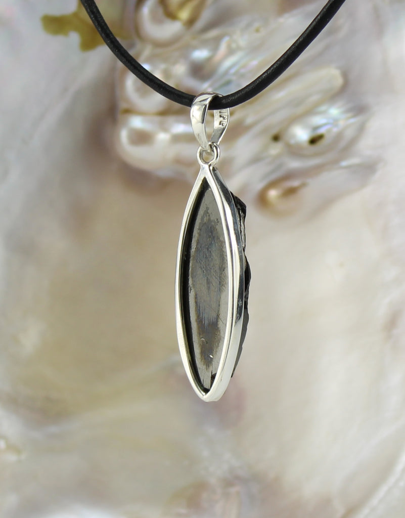 - Sie erhalten den hier abgebildeten Anhänger aus dem Edelstein Edel Schungit (naturbelassen).