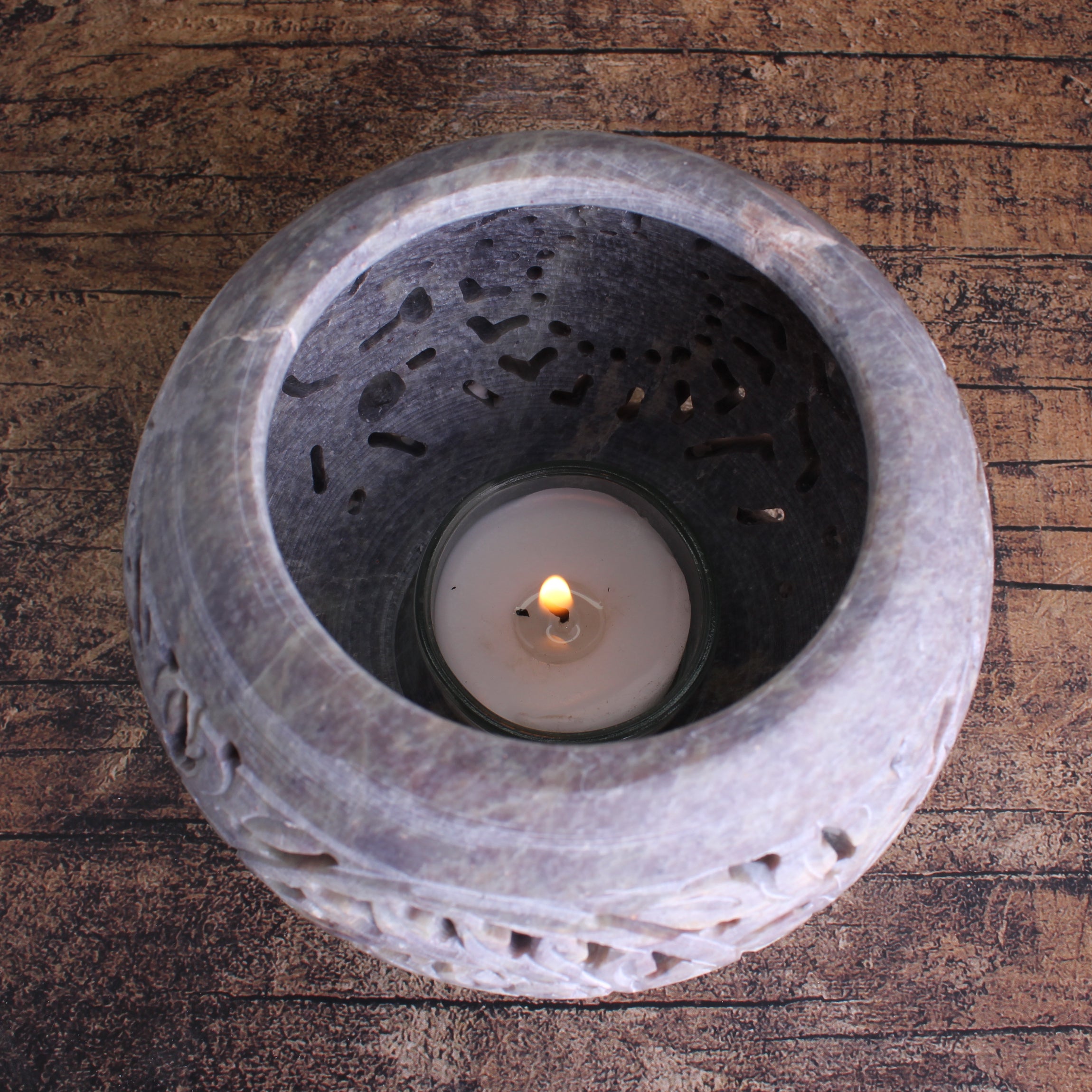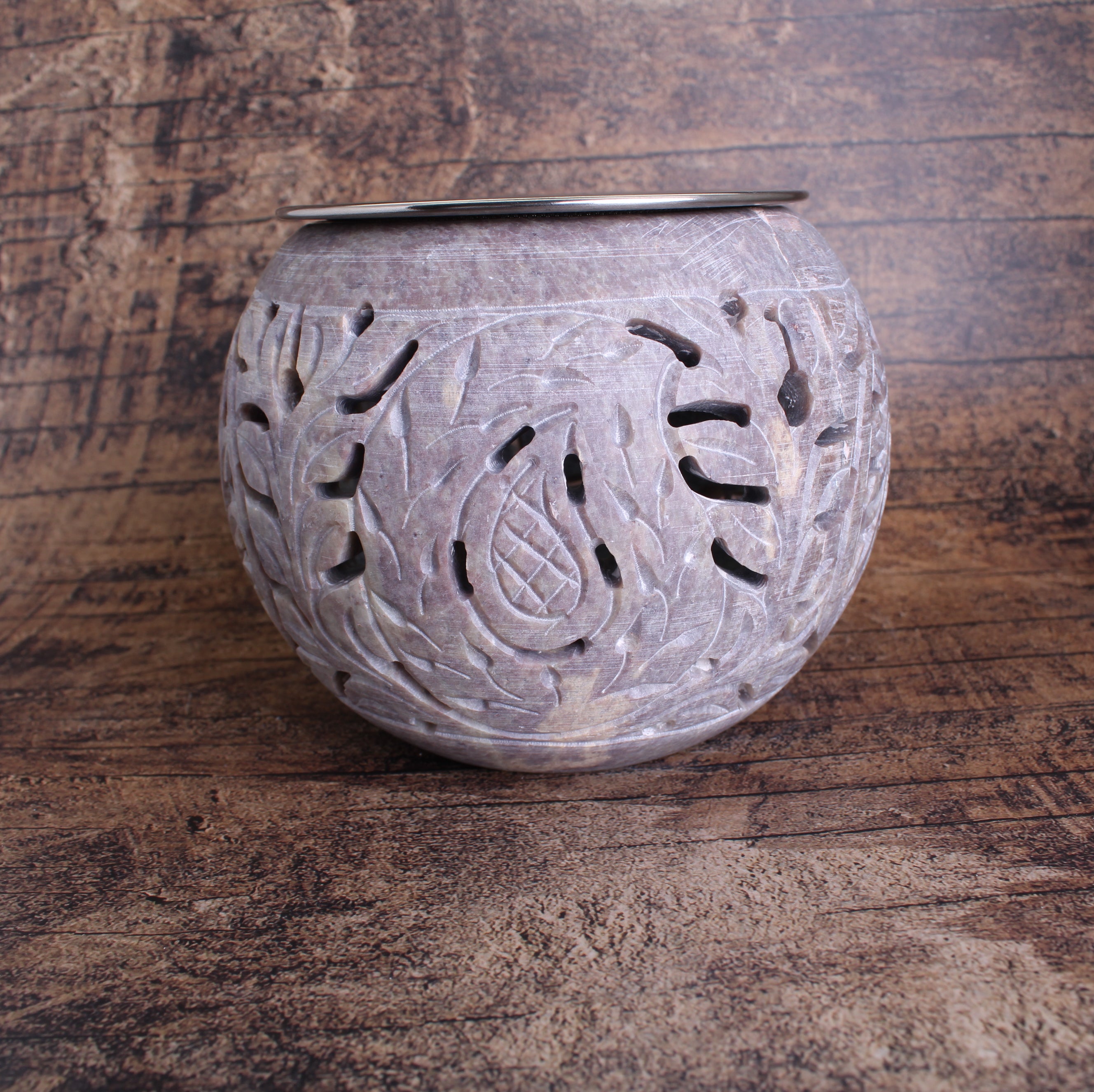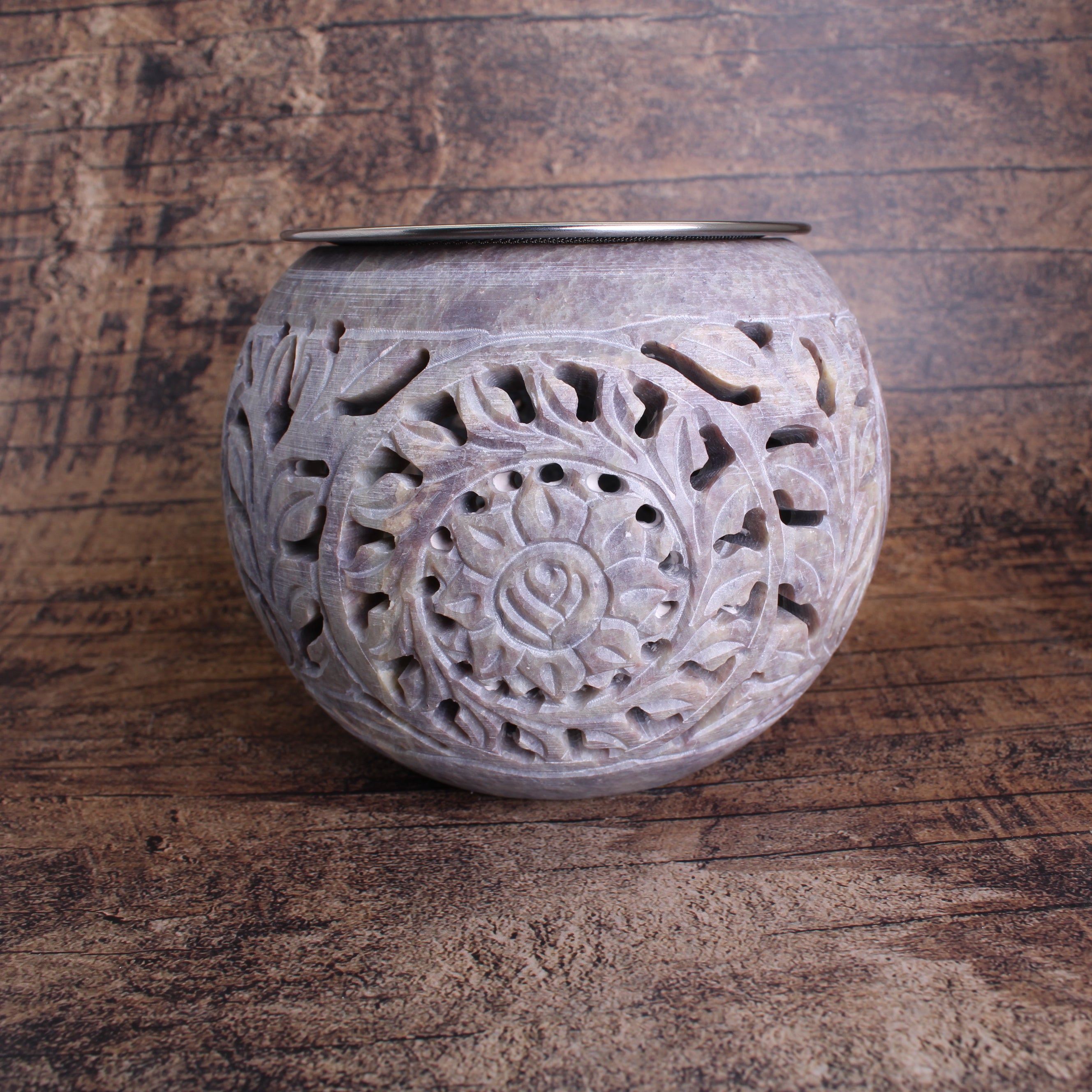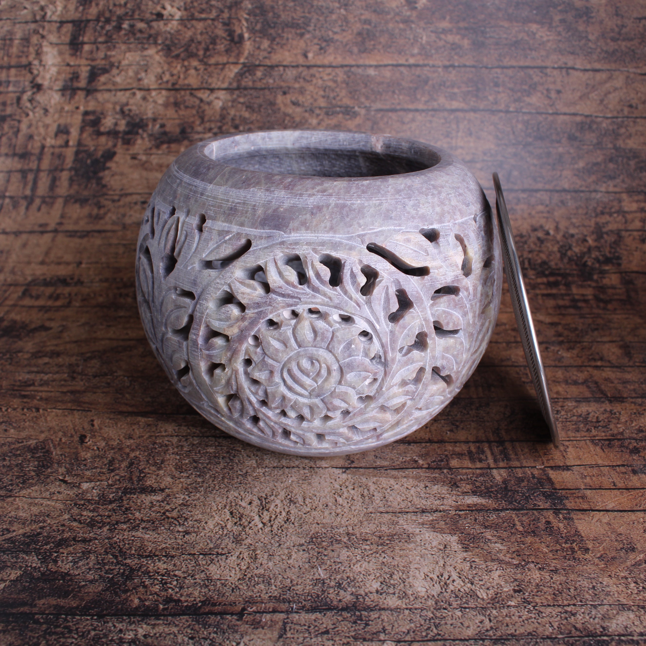 Diese handgeschnitzte Speckstein-Duftlampe verbindet natürliche Wärme, kunstvolle Handarbeit und vielseitige Anwendungsmöglichkeiten zu einem stilvollen Accessoire für dein Zuhause. Jede Duftlampe wird aus massivem Speckstein gefertigt und zeigt eine ganz eigene natürliche Maserung – so wird jedes Stück zu einem harmonischen Unikat voller Charakter.